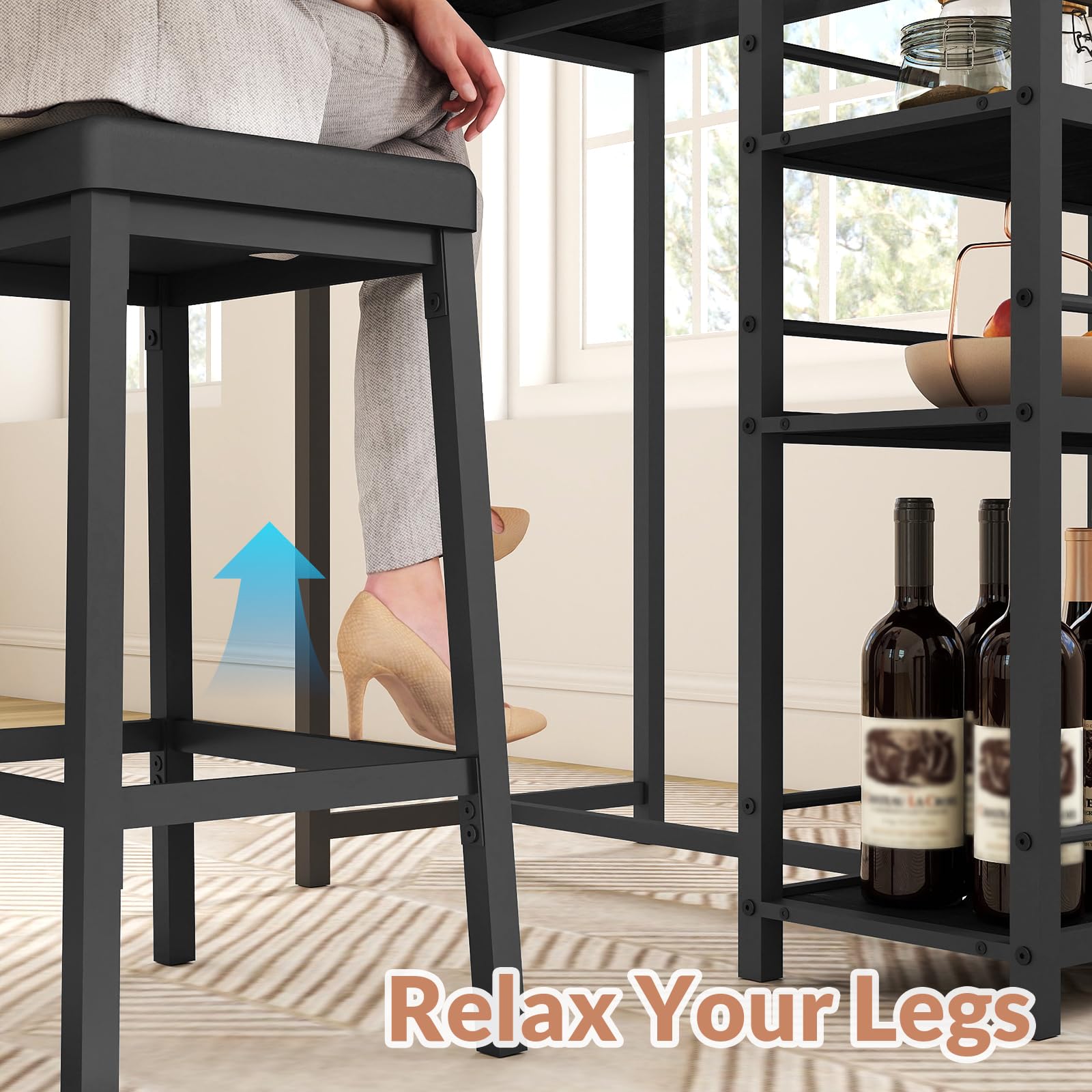 【Sturdy Constructio】This counter-height table set features footrests and an H-shaped metal frame for added support. The black table has thickened edges for extra strength, ensuring stability for a dining experience. For a plush seating experience, each foam seat cushion covered in soft PU leather, offering soft, breathable.
