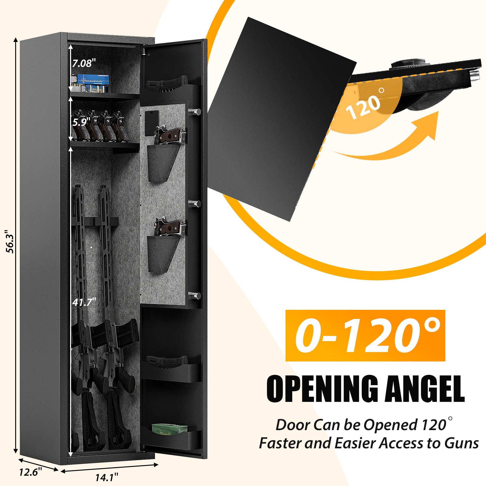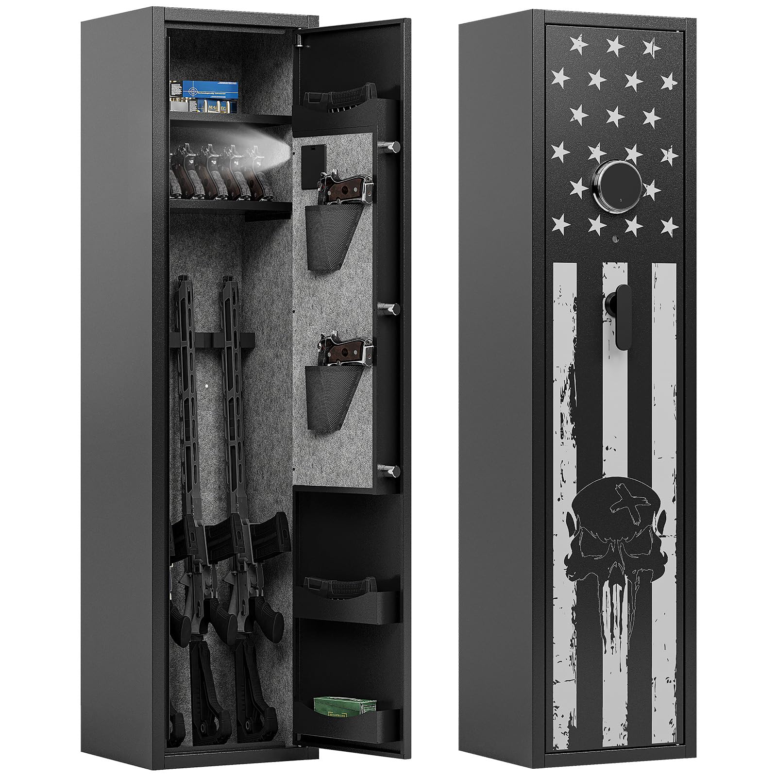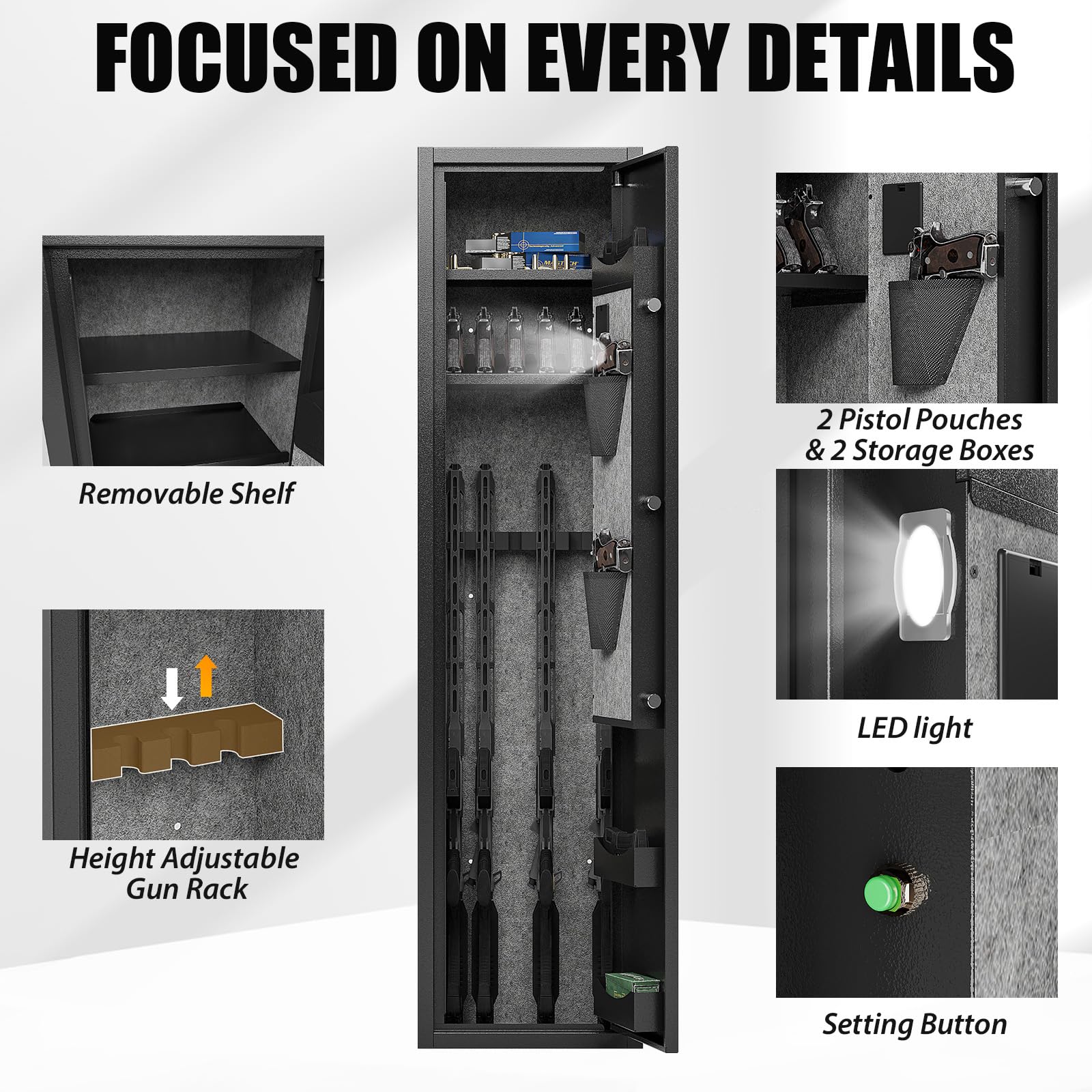6 Gun Safe, Rifle Gun Safe Quick Access Rifle Safe for Home, Digital Keypad Gun Cabinet with Adjustable Gun Rack, Pistol Bags and Storage Boxes, LED Light