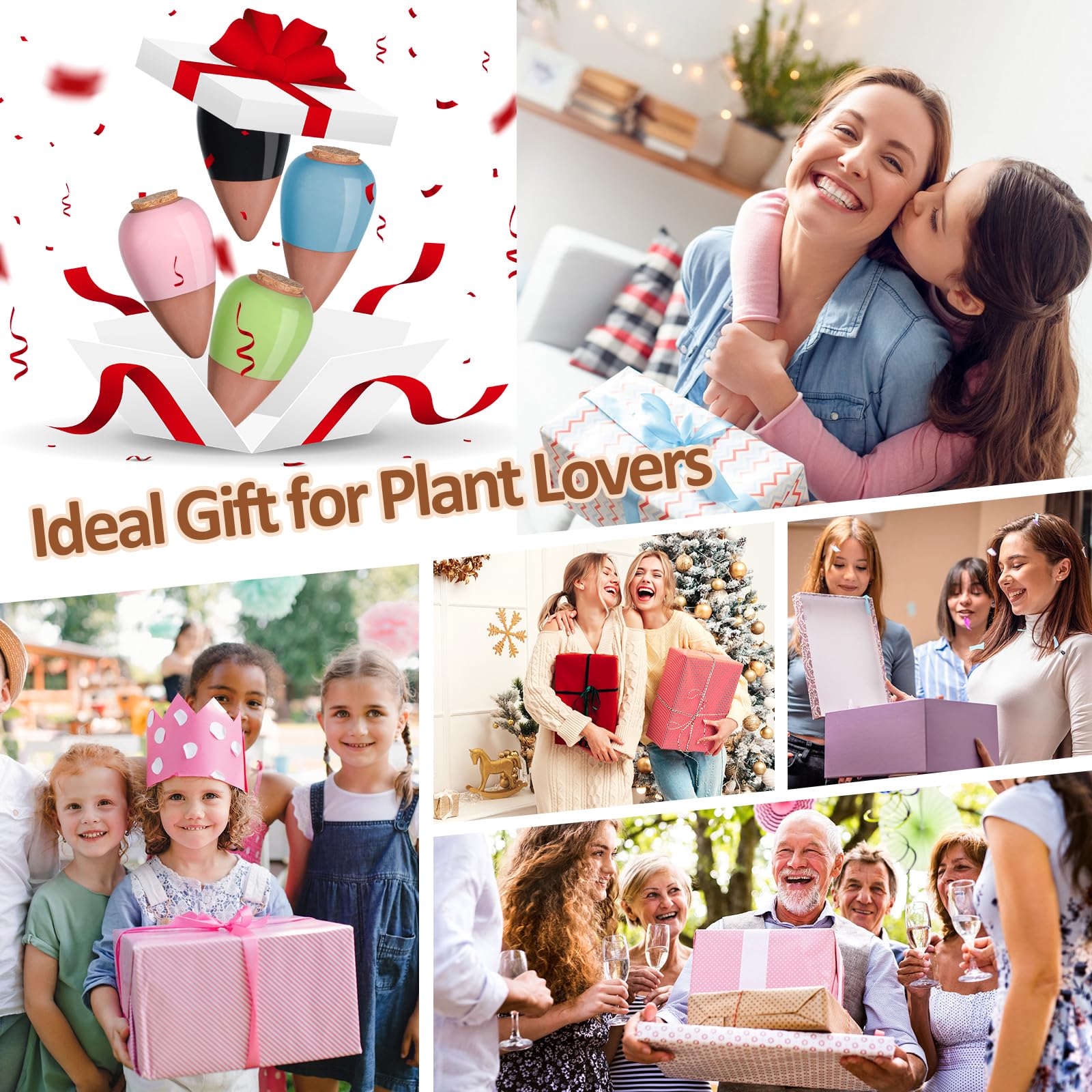 4-Pack Terracotta Watering Spikes, Plant Watering Devices with Lid, Terracotta Spikes Self-Watering Device, Slow Release Plant Watering Spikes for Indoor & Outdoor Plants