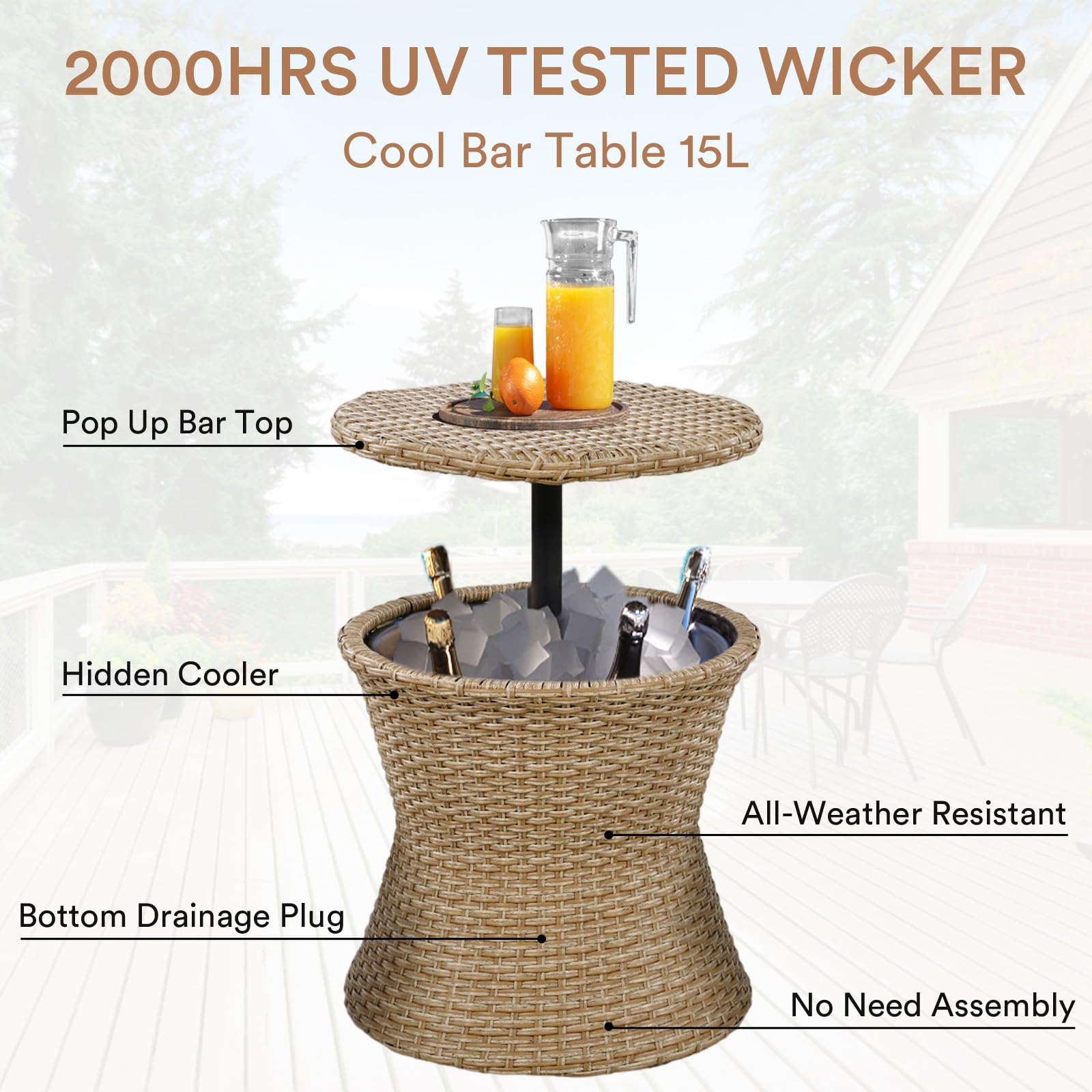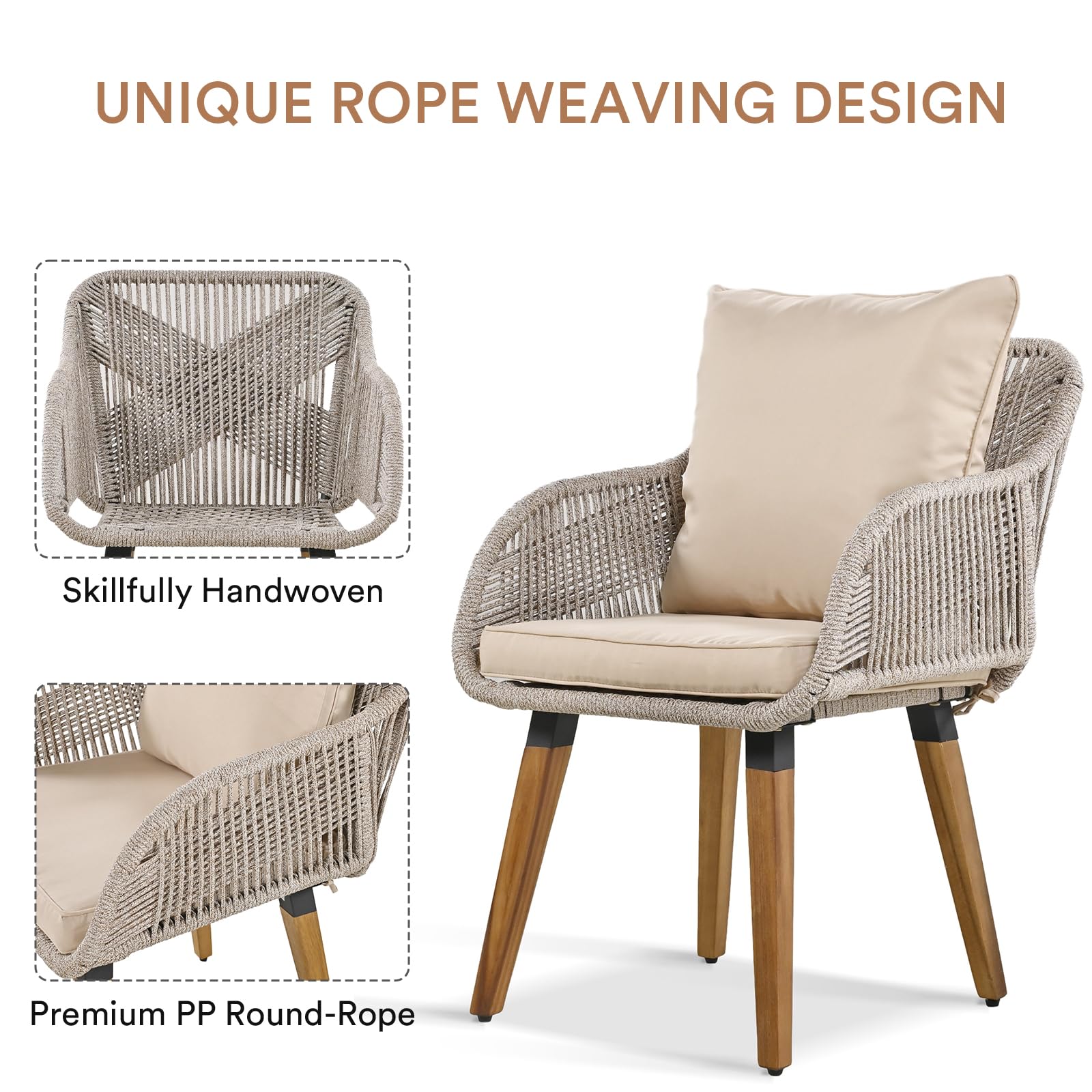5 Piece Rope Patio Furniture Set, All-Weather Conversation Sets for Backyard with Handwoven Armchairs, Ottomans, Pop-Up Cool Bar Wicker Table, Beige