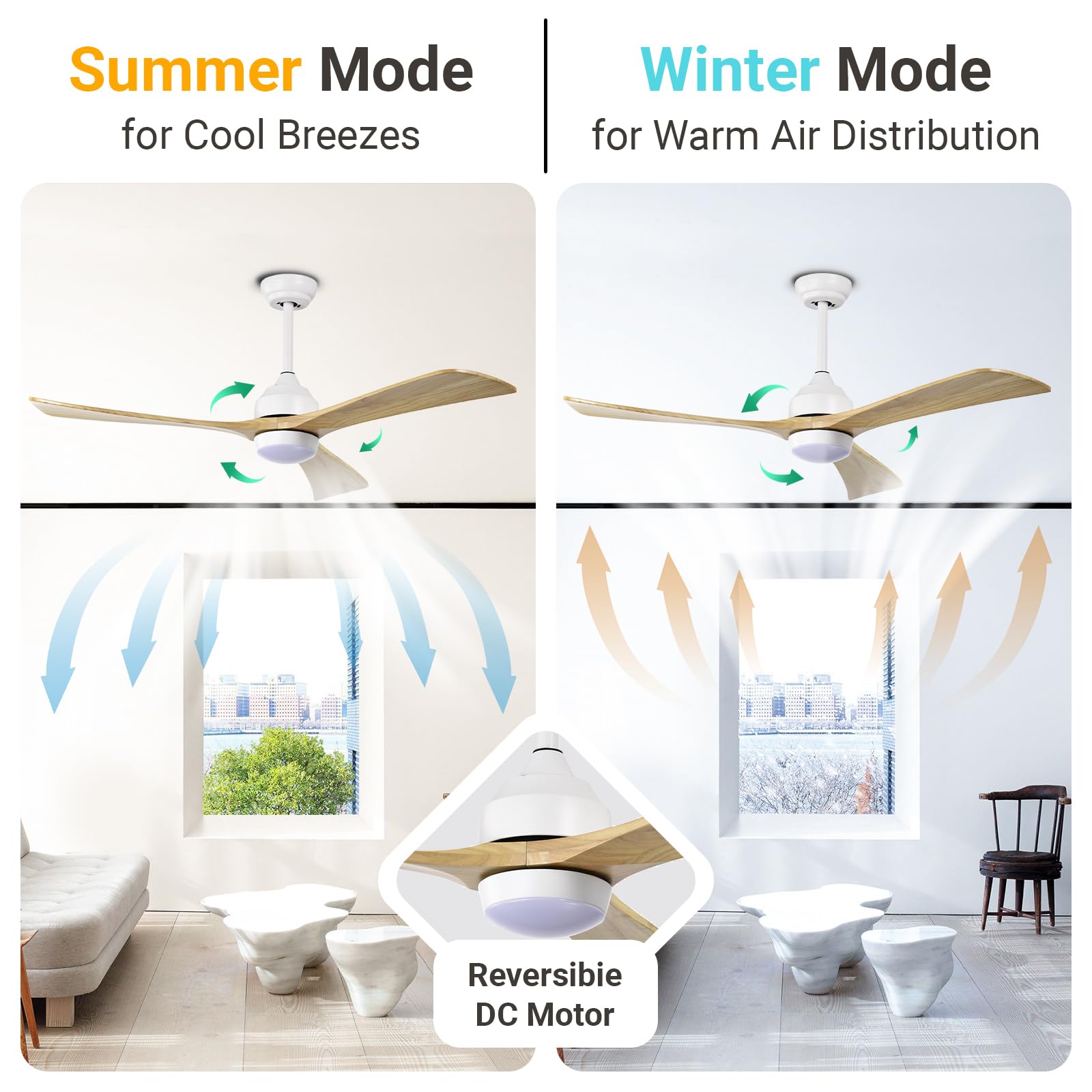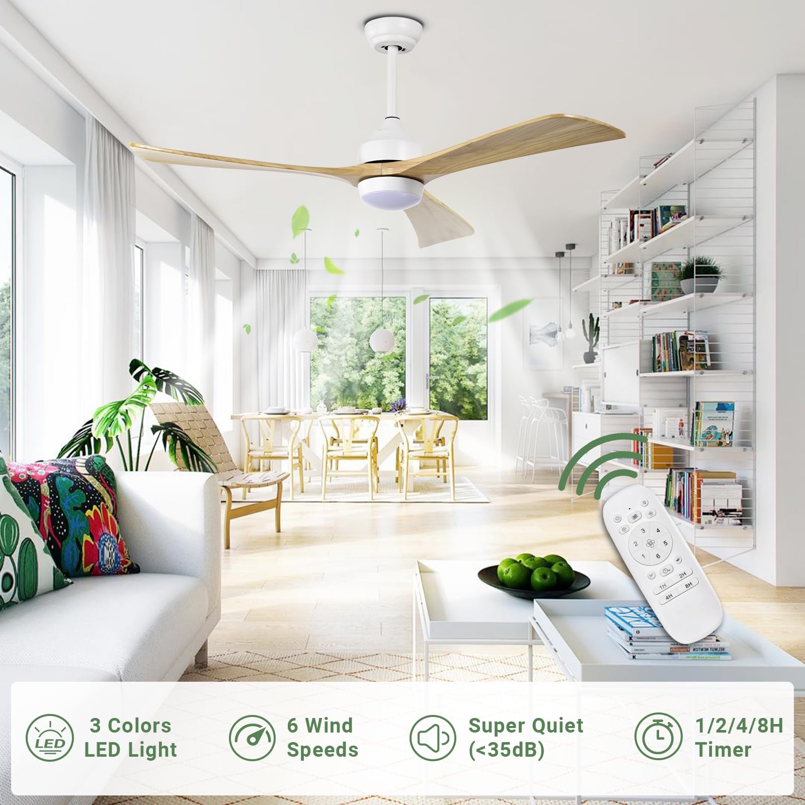 52 Inch Ceiling Fan with Light, Modern Ceiling Fan with Light and Remote, 3 Wooden Blades, Reversible DC Motor, Quiet Ceiling Fan for Bedroom/Living Room/Office, Light Wood