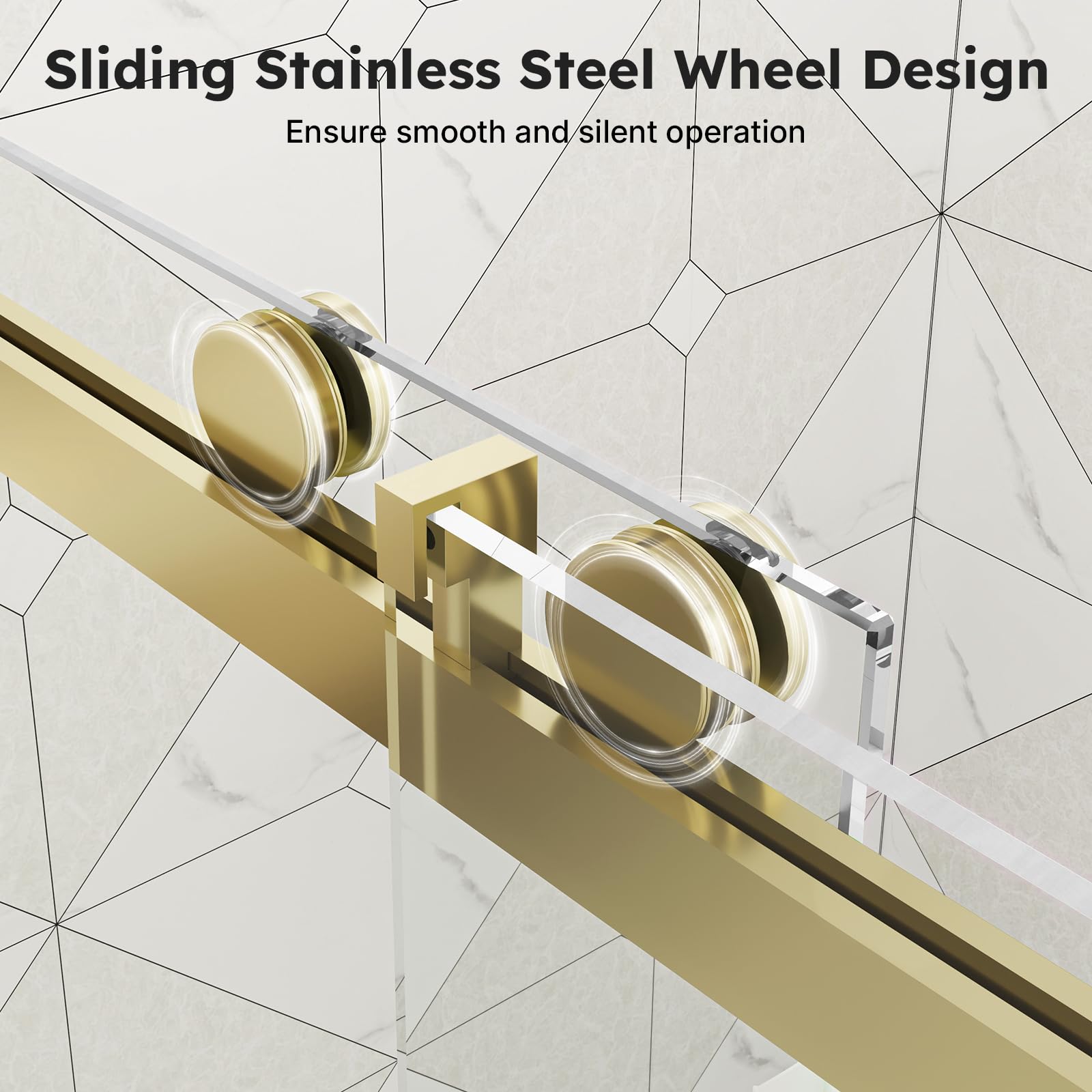 56"-60" W x 76" H Frameless Shower Door, Sliding Shower Door with 1/4" (6mm) Clear Tempered Glass, Silent Soft-Close Shatterproof Shower Doors, Reversible Installation, Aluminum, Gold