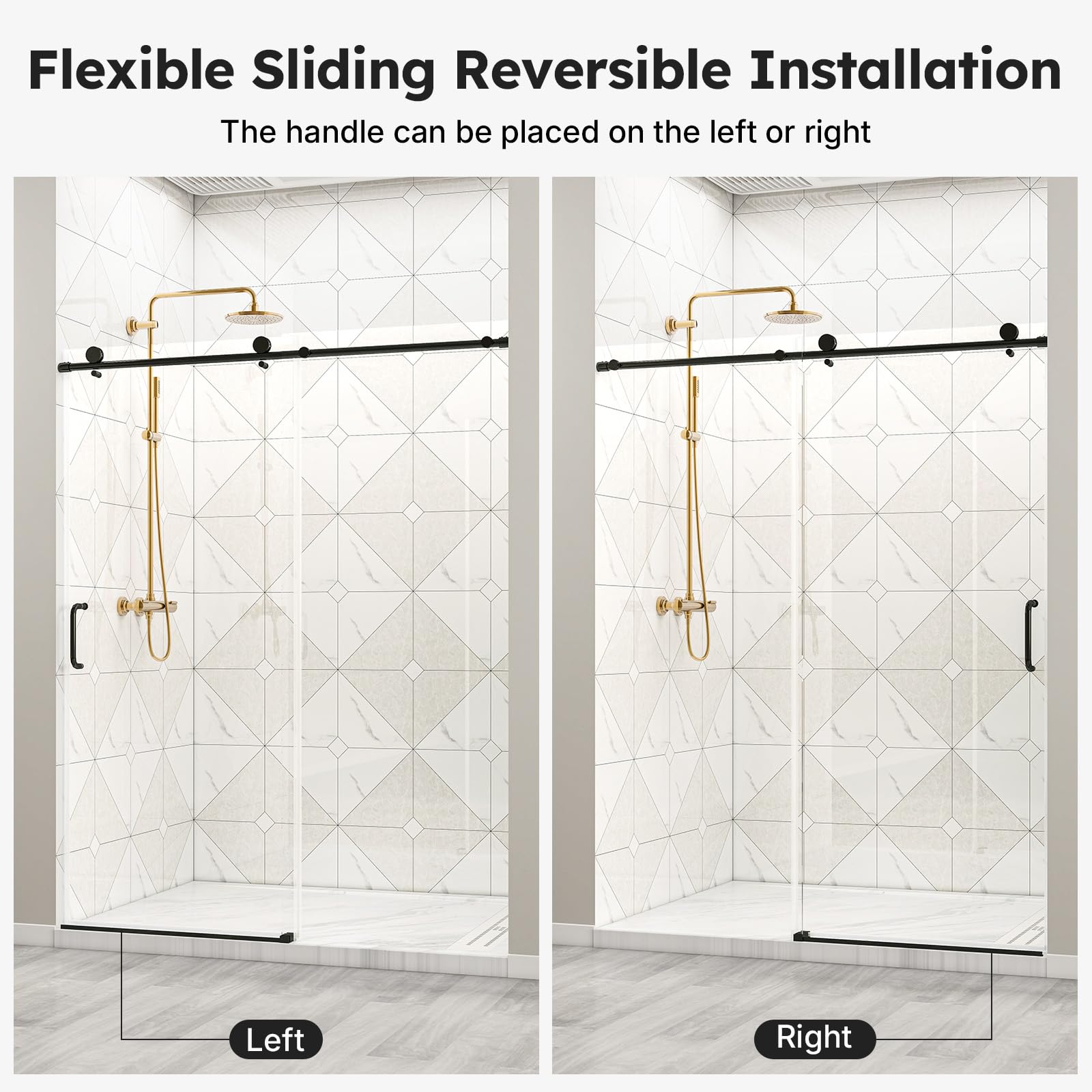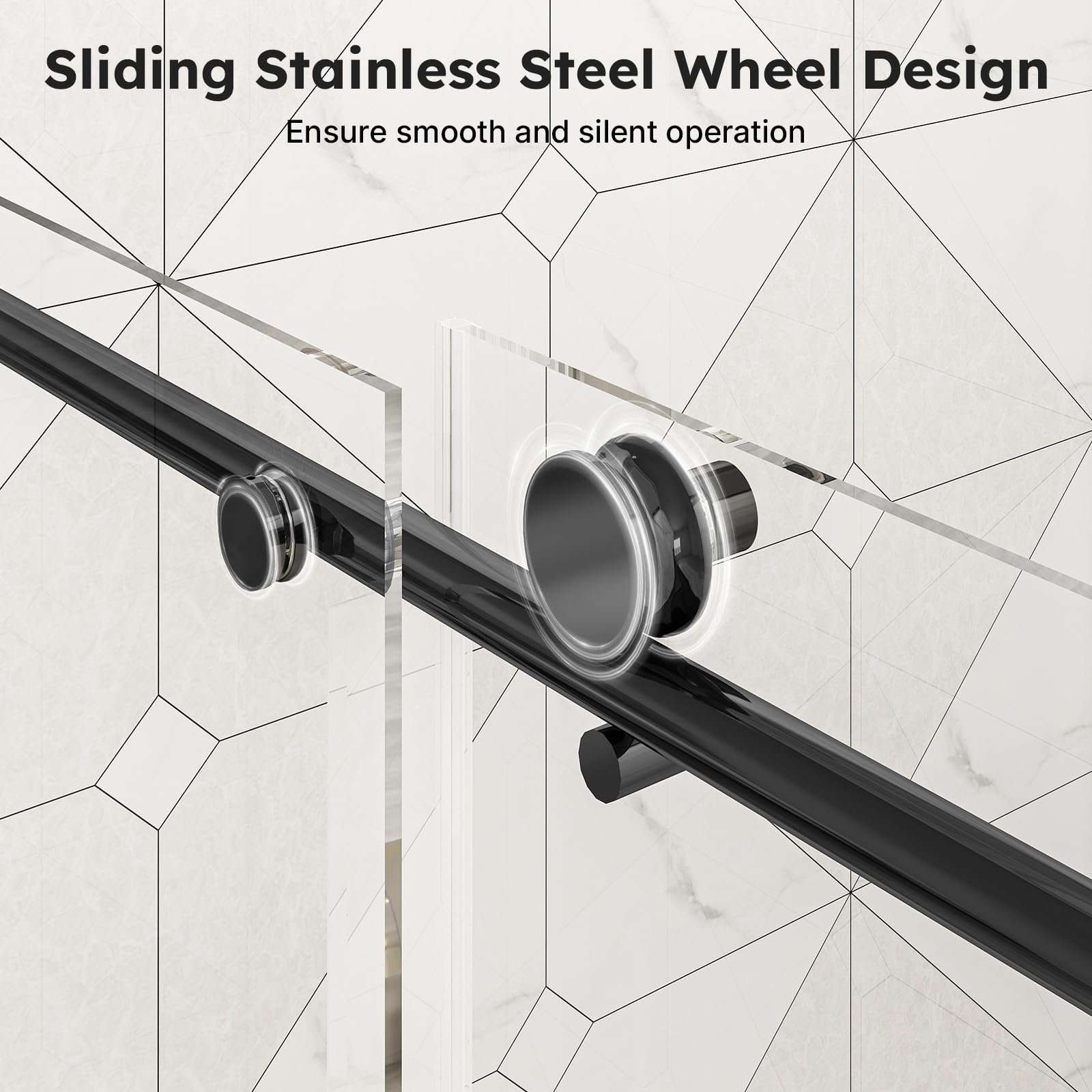 56"-60" W x 76" H Frameless Sliding Shower Door, Bathroom Sliding Door with 1/4'' (6mm) Tempered Glass, Explosion-Proof Film, Silent Soft-Close Shower Door, Stainless Steel Handle, Black