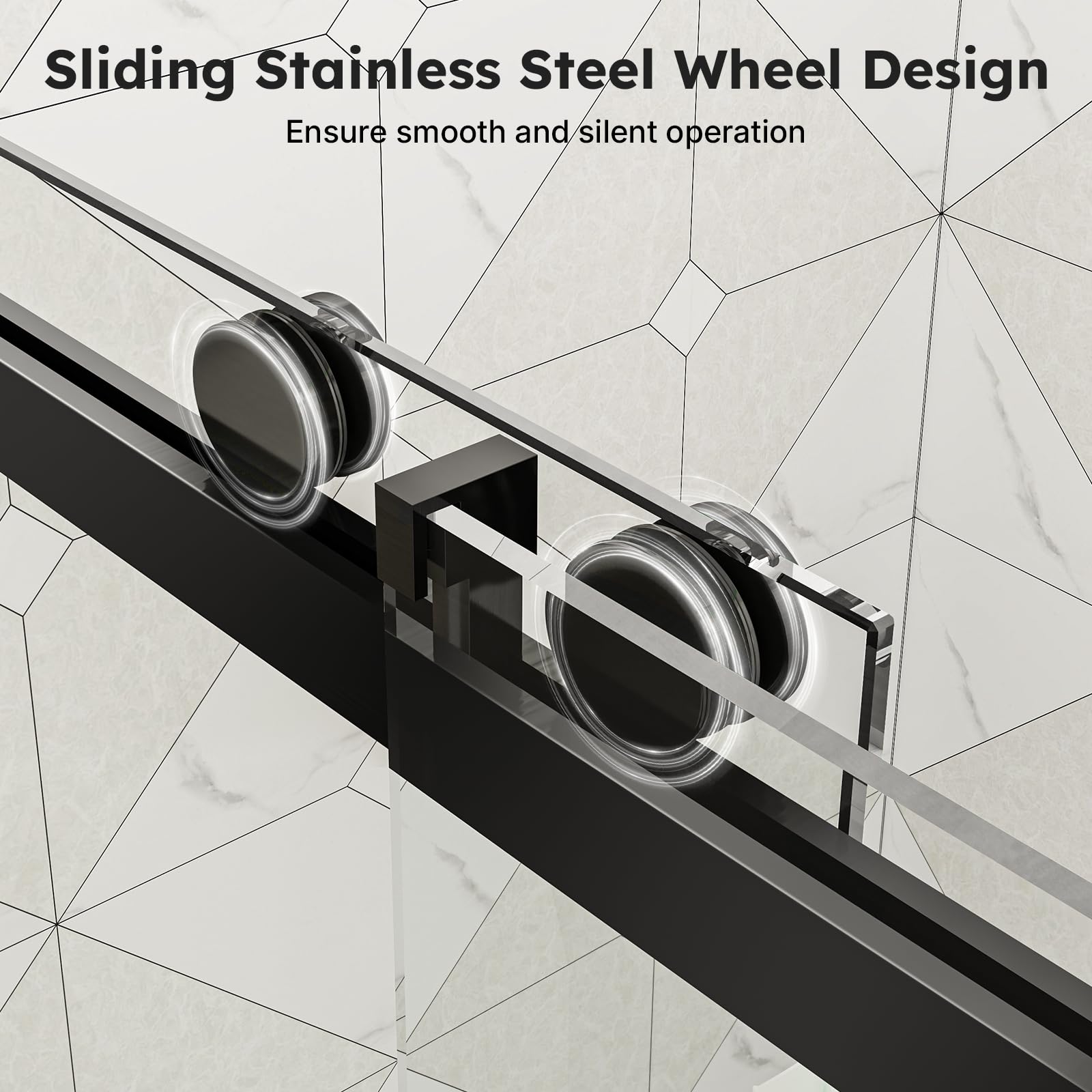 【Smooth & Silent Operation】Enjoy effortless use with the single sliding shower door, featuring quiet stainless steel rollers and a durable aluminum top track. This design guarantees smooth, stable movement—no noise, no wobbling—for a premium showering experience every time.