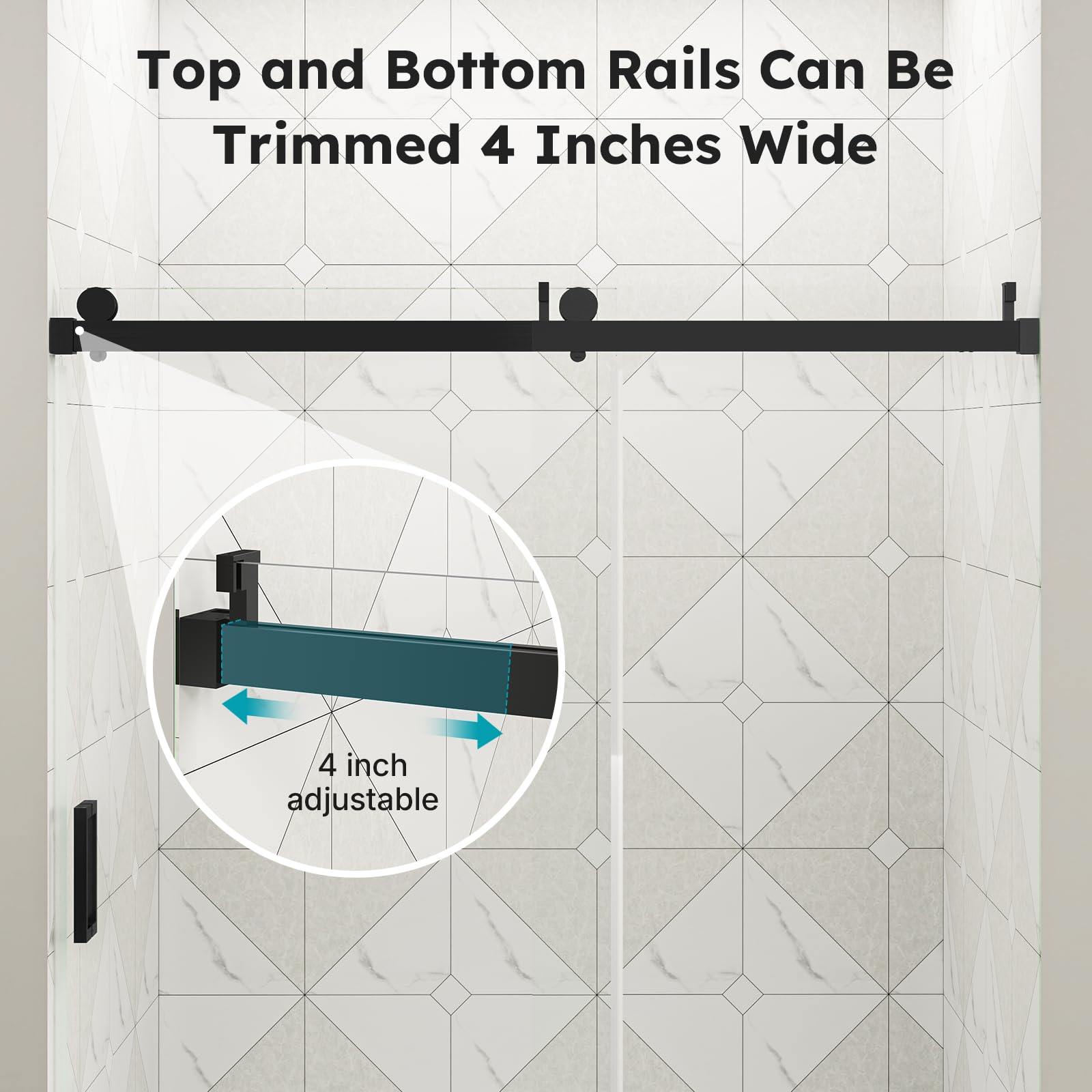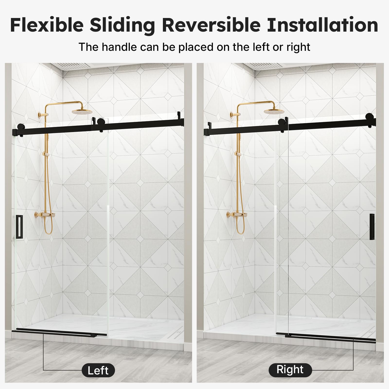 56"-60" W x 76" H Shower Door, Frameless Sliding Shower Glass Door with 1/4" (6mm) Clear Tempered Glass, Noiseless & Shatterproof Shower Door, Reversible Installation, Black