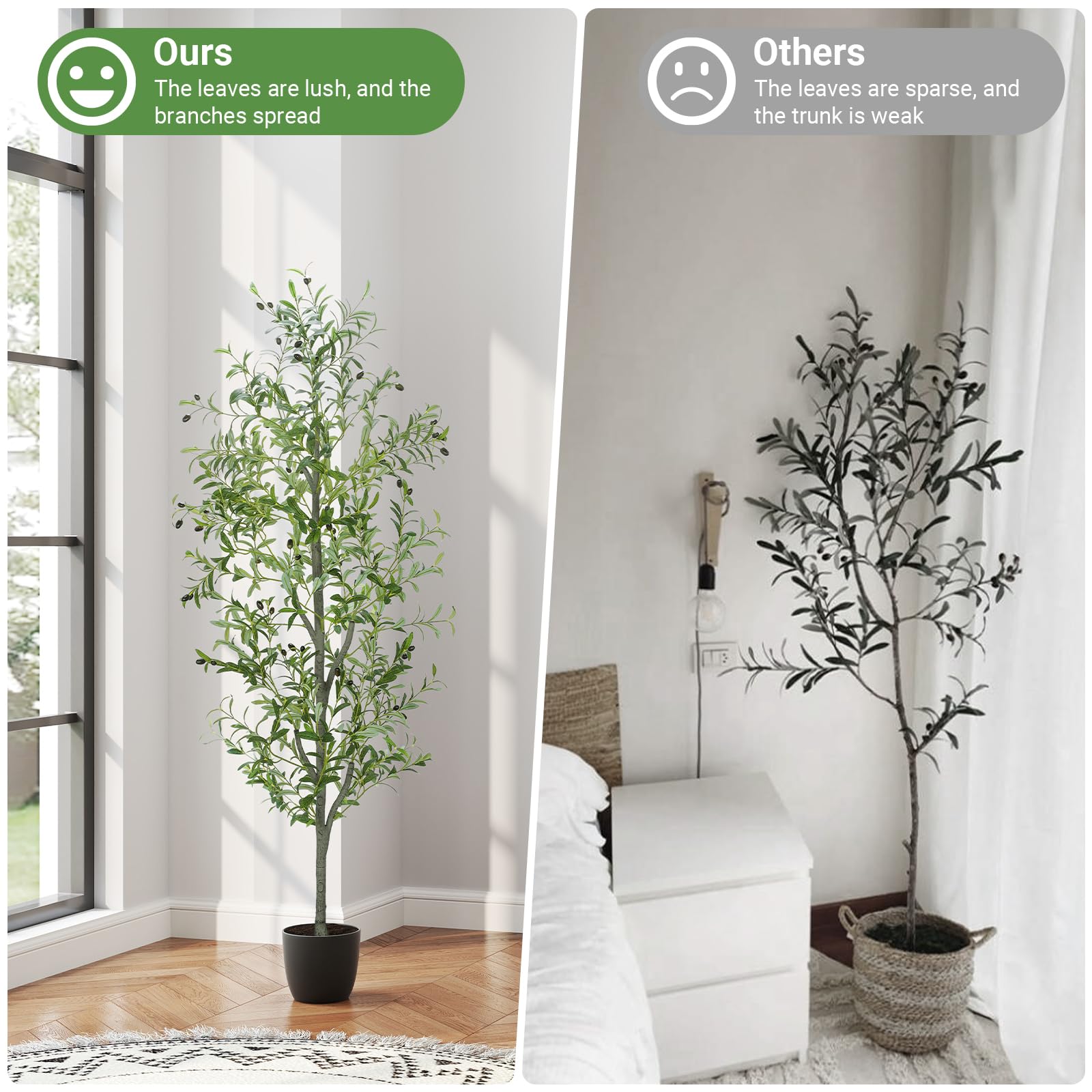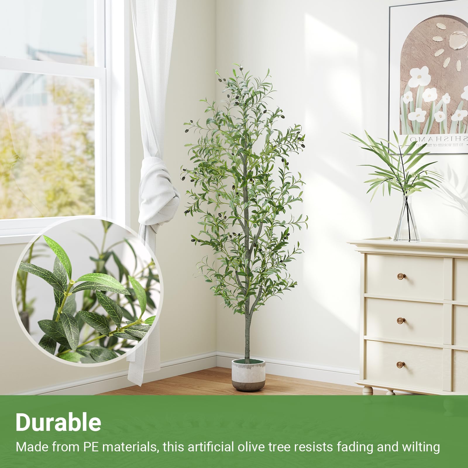 6 FT Faux Olive Tree Indoor, Tall Artificial Silk Olive Tree 6 FT, Large Indoor Fake Olive Trees with Realistic Leaves, Branches, Fruits, Faux Olive Trees Artificial Plants for Home (6 Feet)