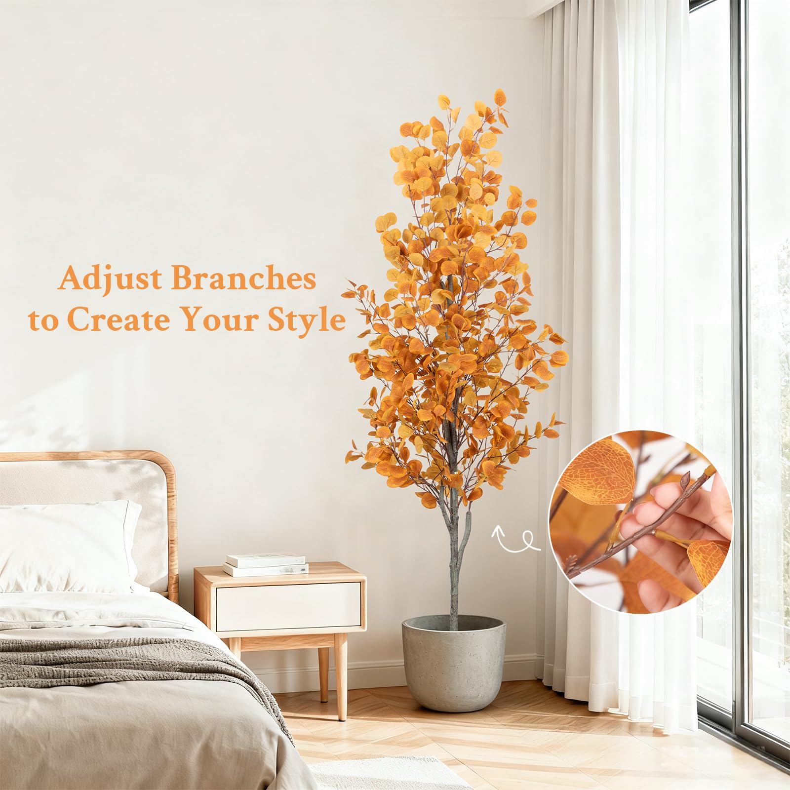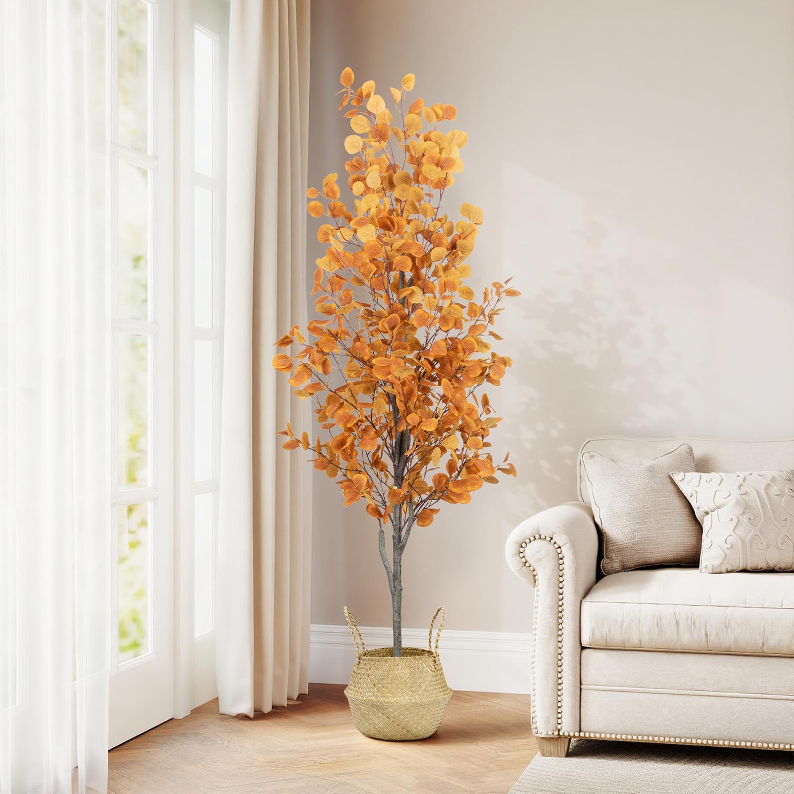 6FT Artificial Eucalyptus Tree with Wicker Basket & Black Pot, Indoor Green Faux Eucalyptus Trees, Fake Eucalyptus Plants with Lifelike Leaves & Natural Trunk for Home Office Bedroom, 1 Pack