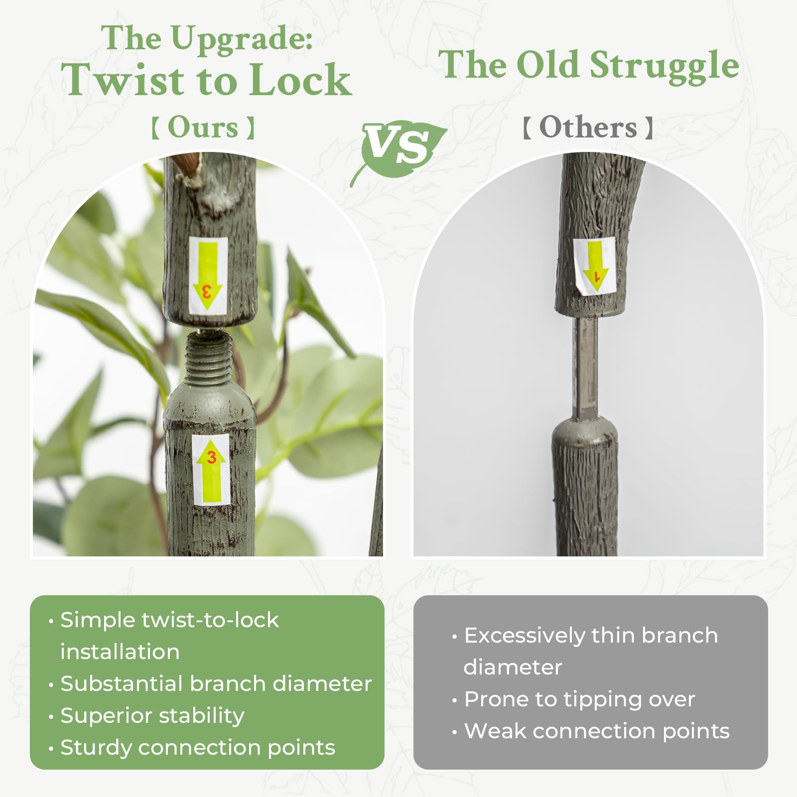 6FT Artificial Eucalyptus Tree with Wicker Basket & Black Pot, Indoor Green Faux Eucalyptus Trees, Fake Eucalyptus Plants with Lifelike Leaves & Natural Trunk for Home Office Bedroom, 2 Pack