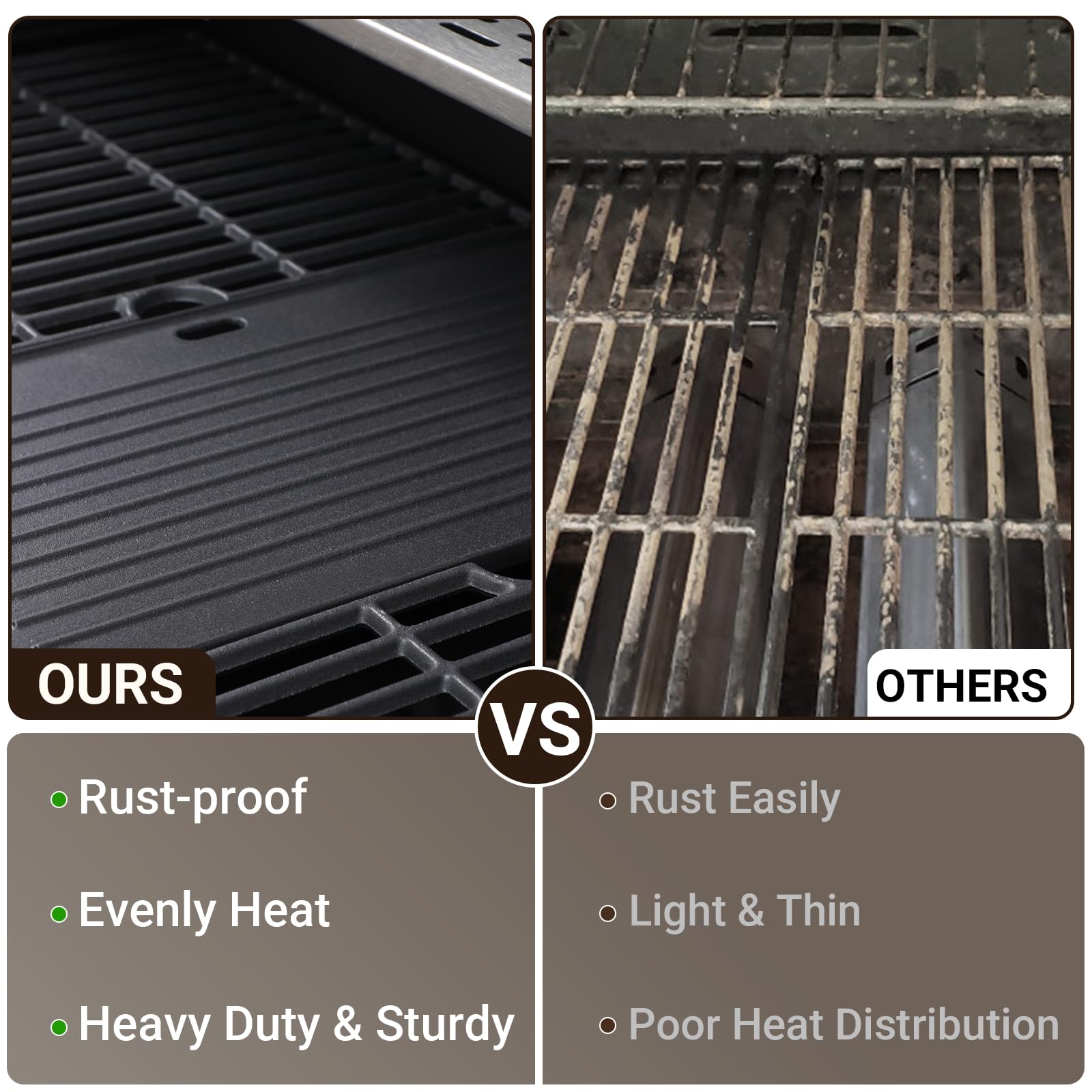 【Ample Cooking Space】With 620 sq.in grilling area and a 174 sq.in warming rack, this gas grill with side burner can handle anything from family meals to large gatherings, while the stainless steel warming rack keeps your food hot until serving