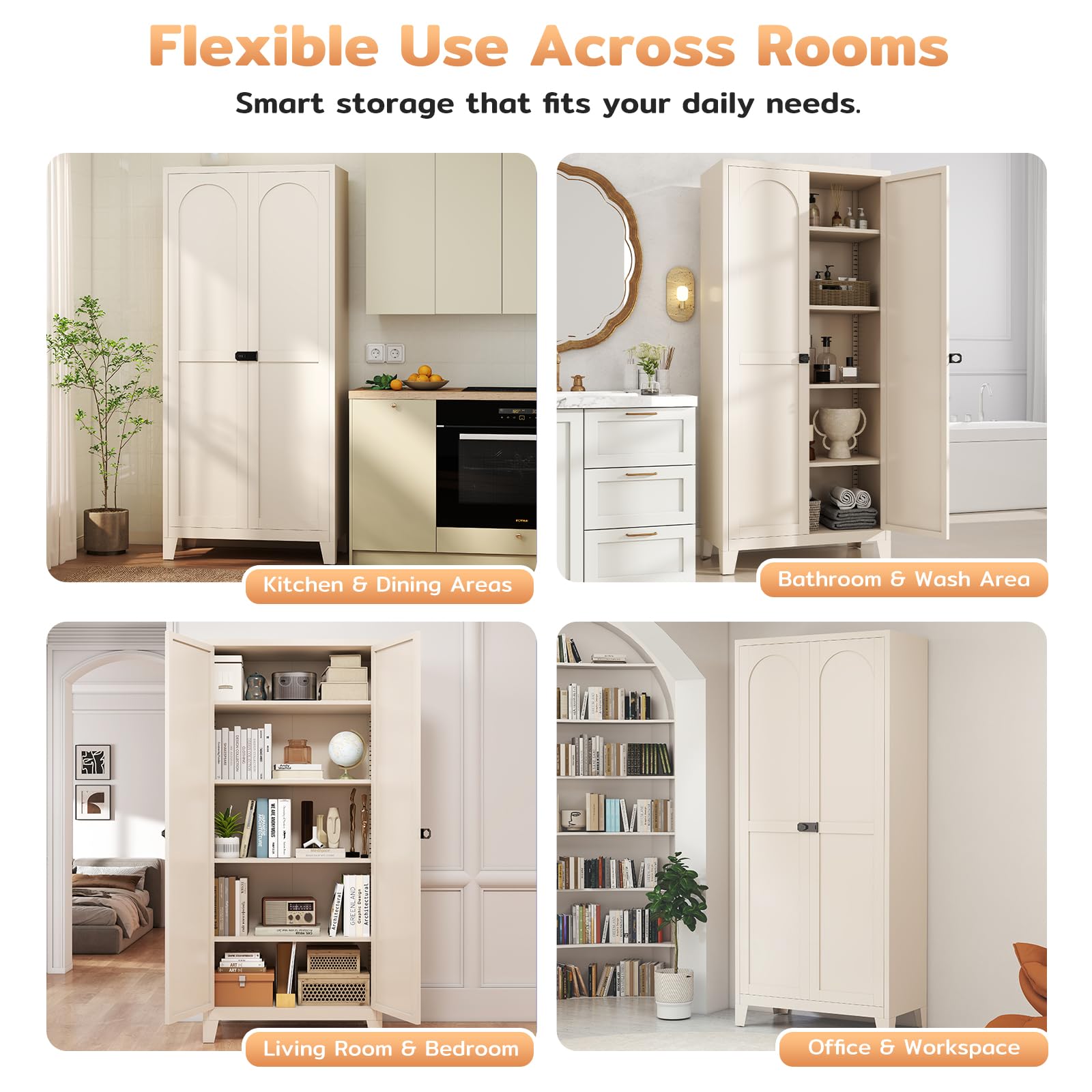 70.87" Tall Metal Storage Cabinet with 3-Digit Combination Lock, Steel Pantry Cabinet with 4 Adjustable Shelves & 2 Doors, Secure Freestanding Organizer for Home, Office, Garage, Beige