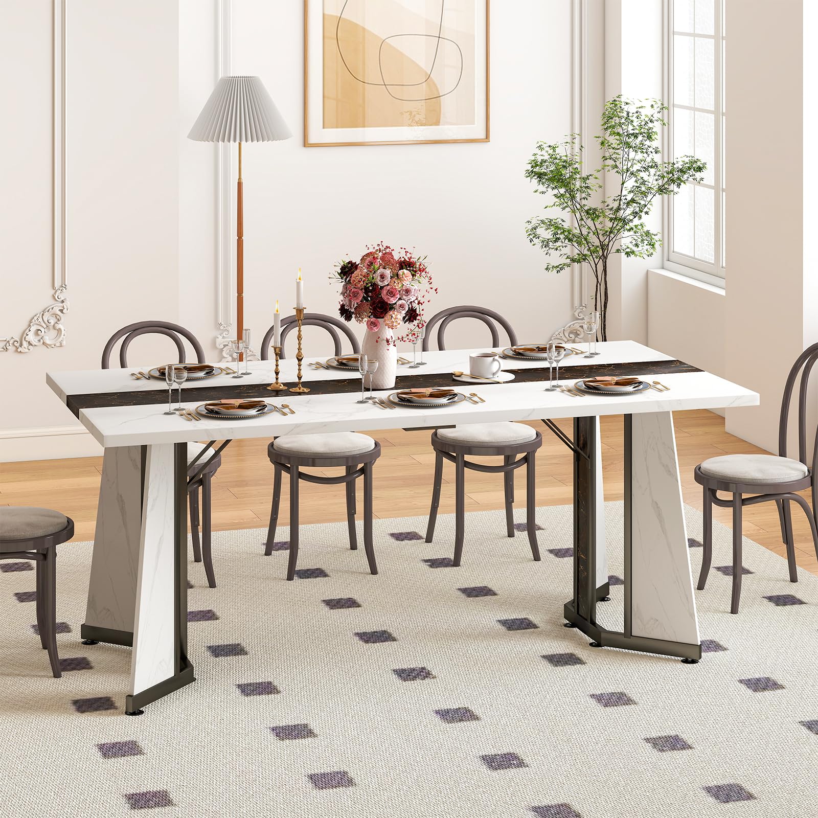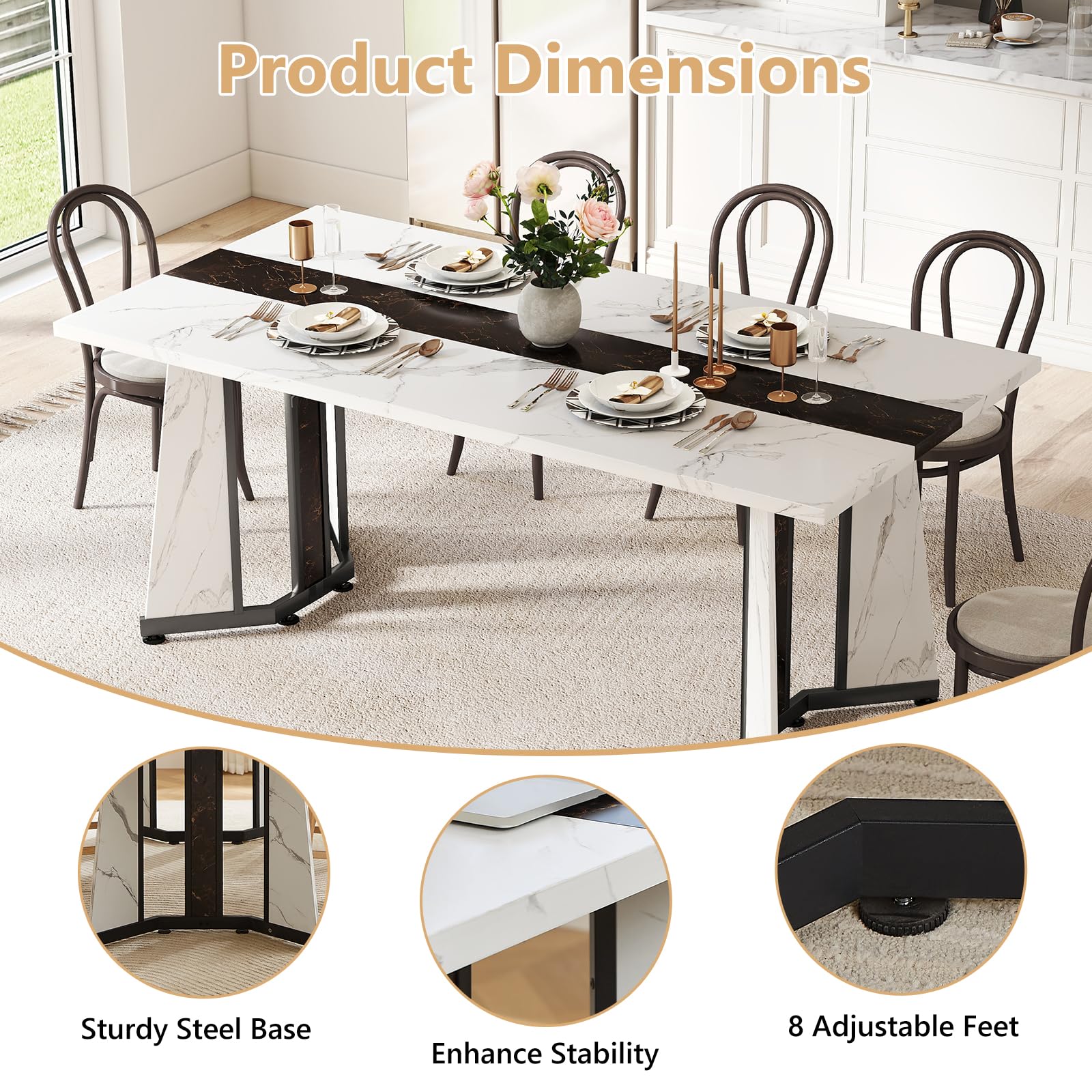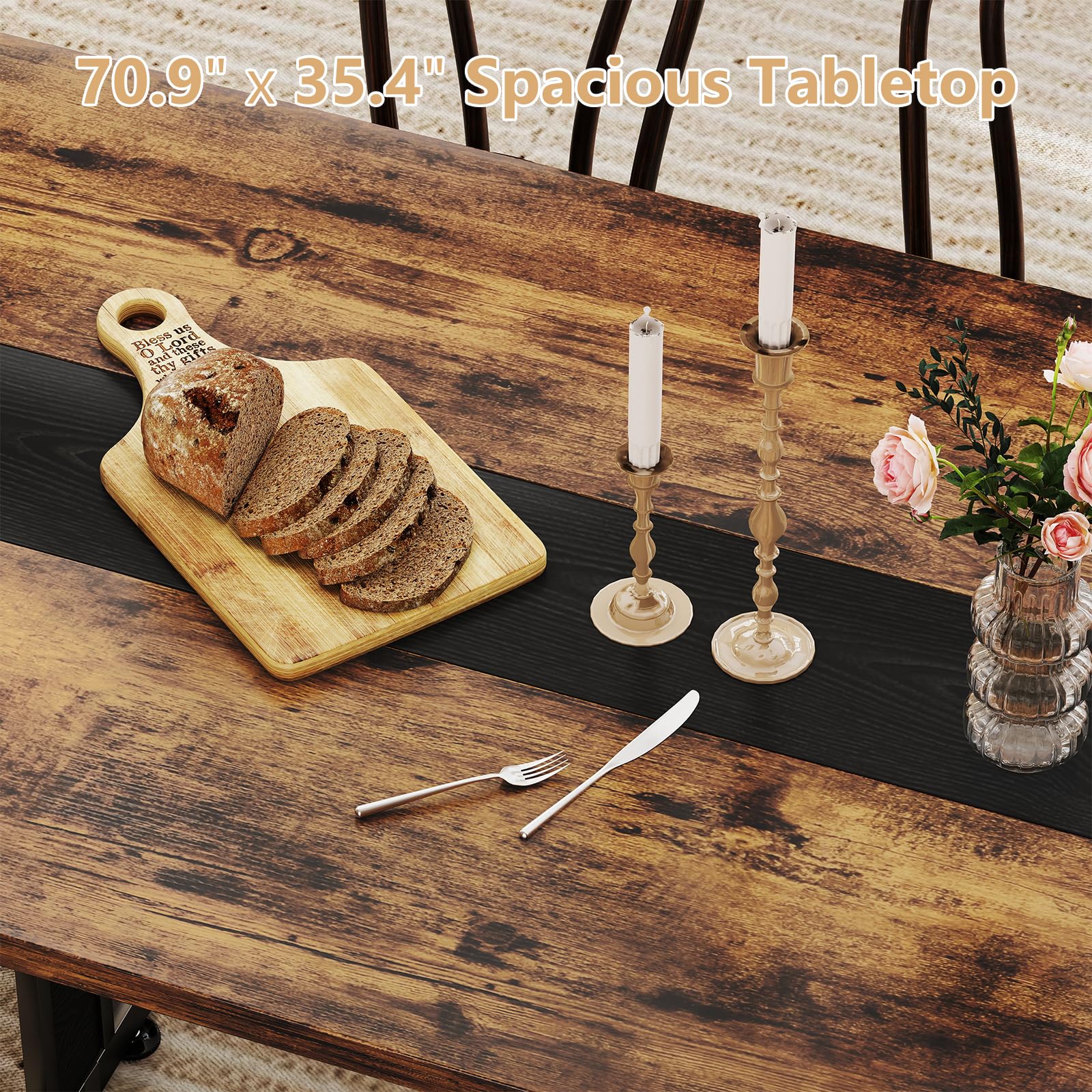 【Large Dining Table for 6-8】Measuring 70.9" × 35.4", the large tabletop offers ample room for meals, work, or gatherings with up to 8 people. Built with a sturdy steel frame and 8 adjustable feet, the rectangular kitchen table stays stable and balanced—even on uneven floors.