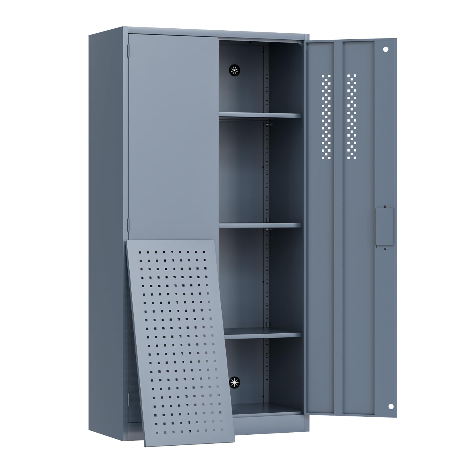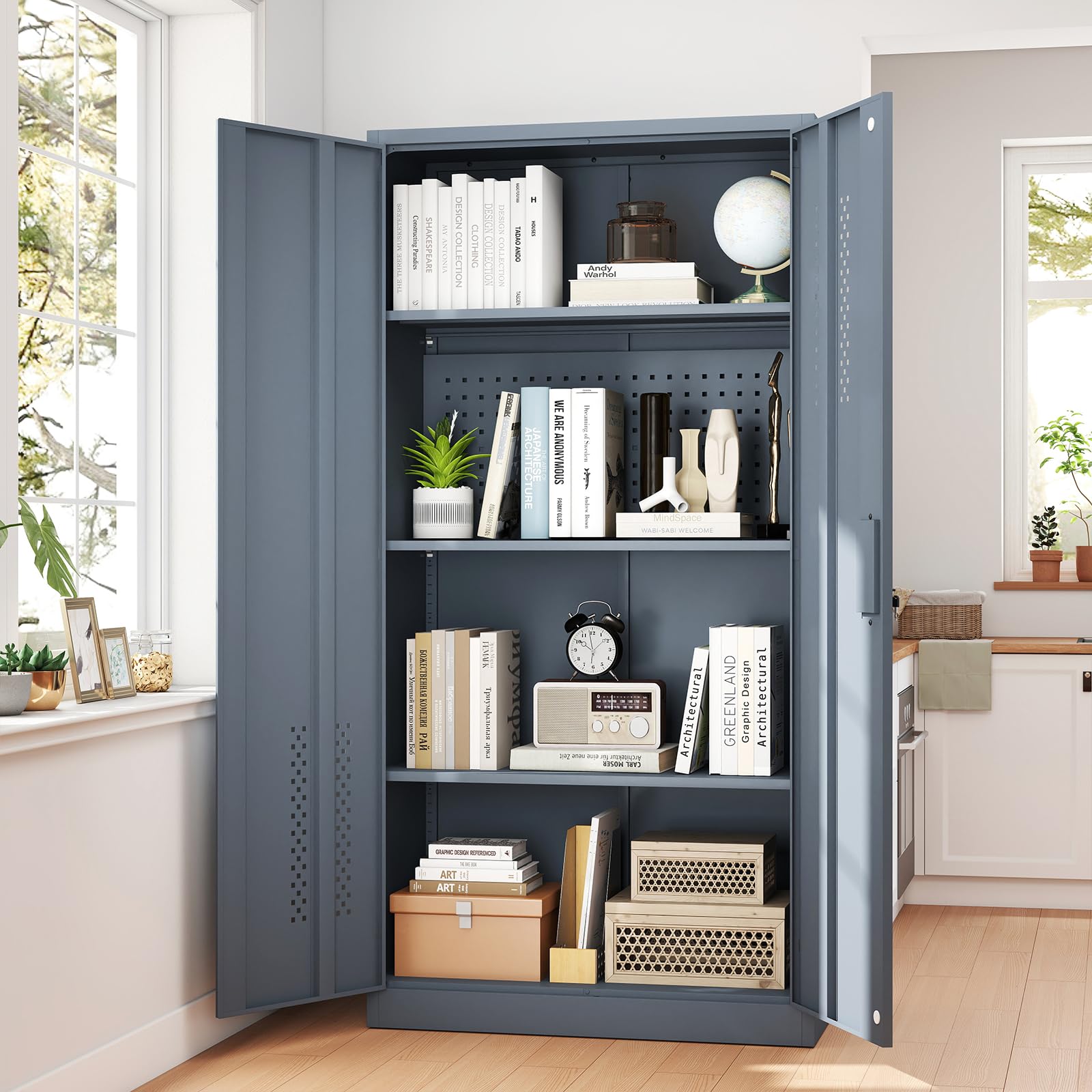 72" H Metal Storage Cabinet, Garage Storage Cabinet with 2 Doors and 4 Adjustable Shelves, Tall Lockable Cabinet for Kitchen, Office, Home or Garage(Grey)