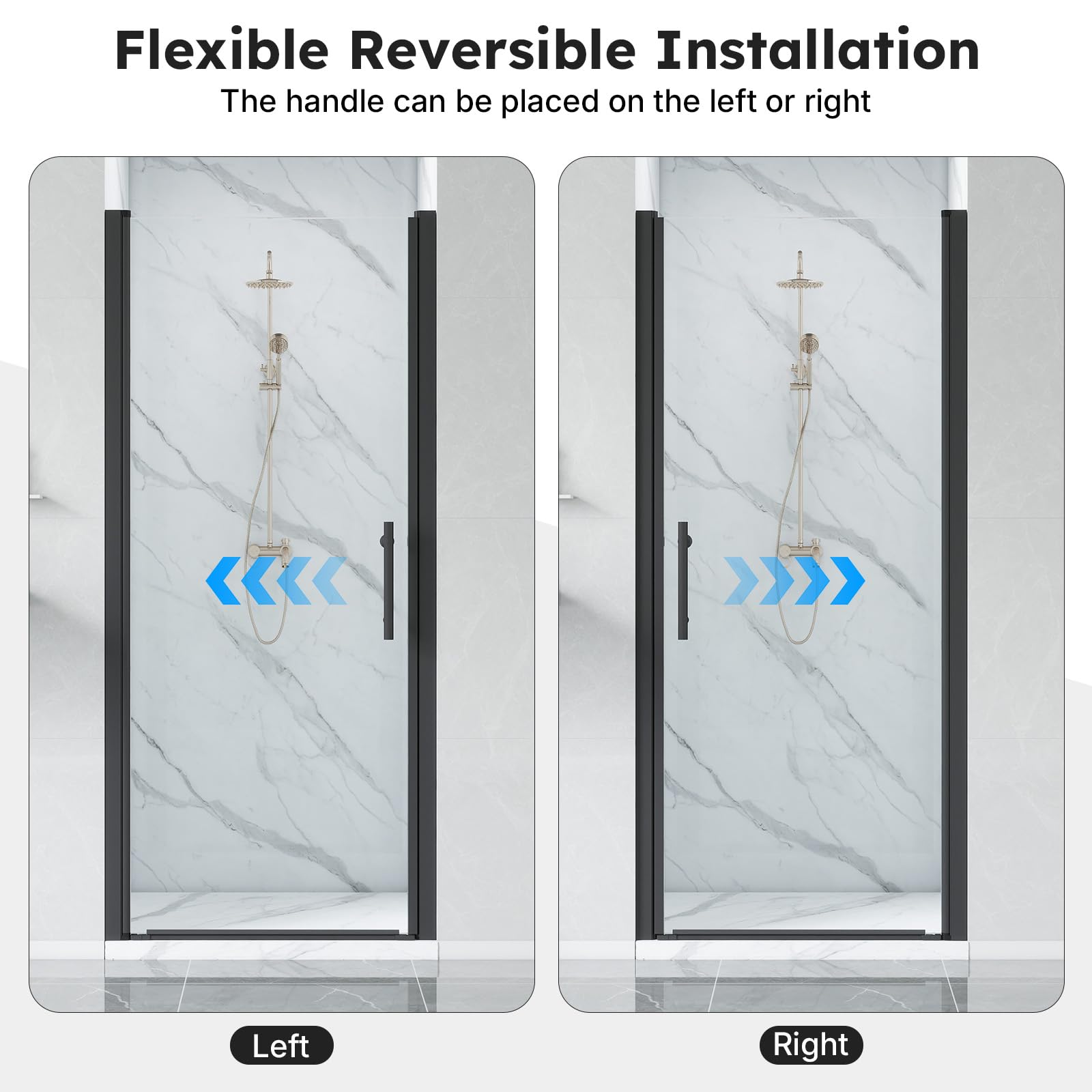 Adjustable 34-35.5" W x 75" H Semi-Frameless Pivot Shower Door, 1/4" (6mm) Clear Tempered Glass Shower Door, Pivot Swing Shower Glass Door, Reversible Installation, Black