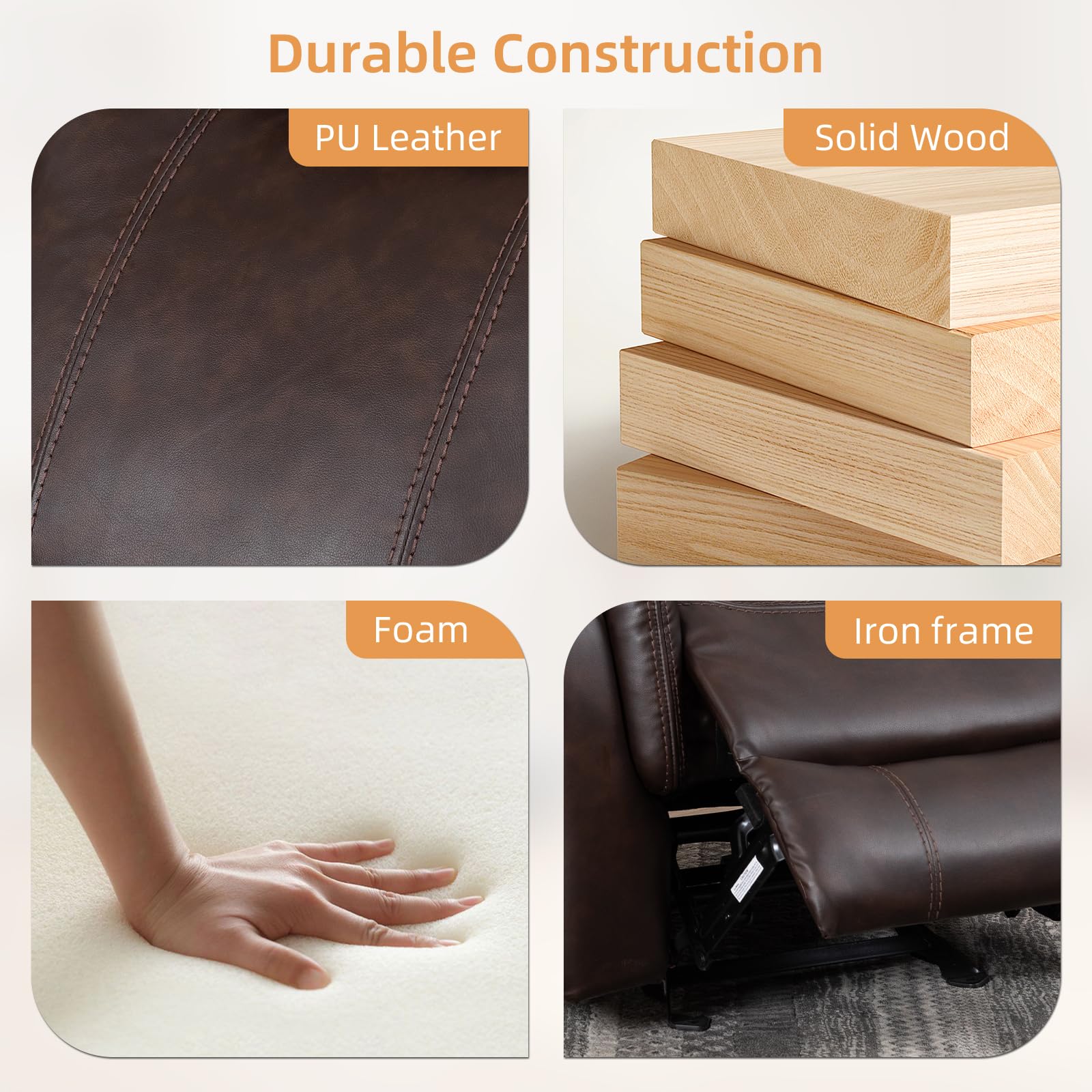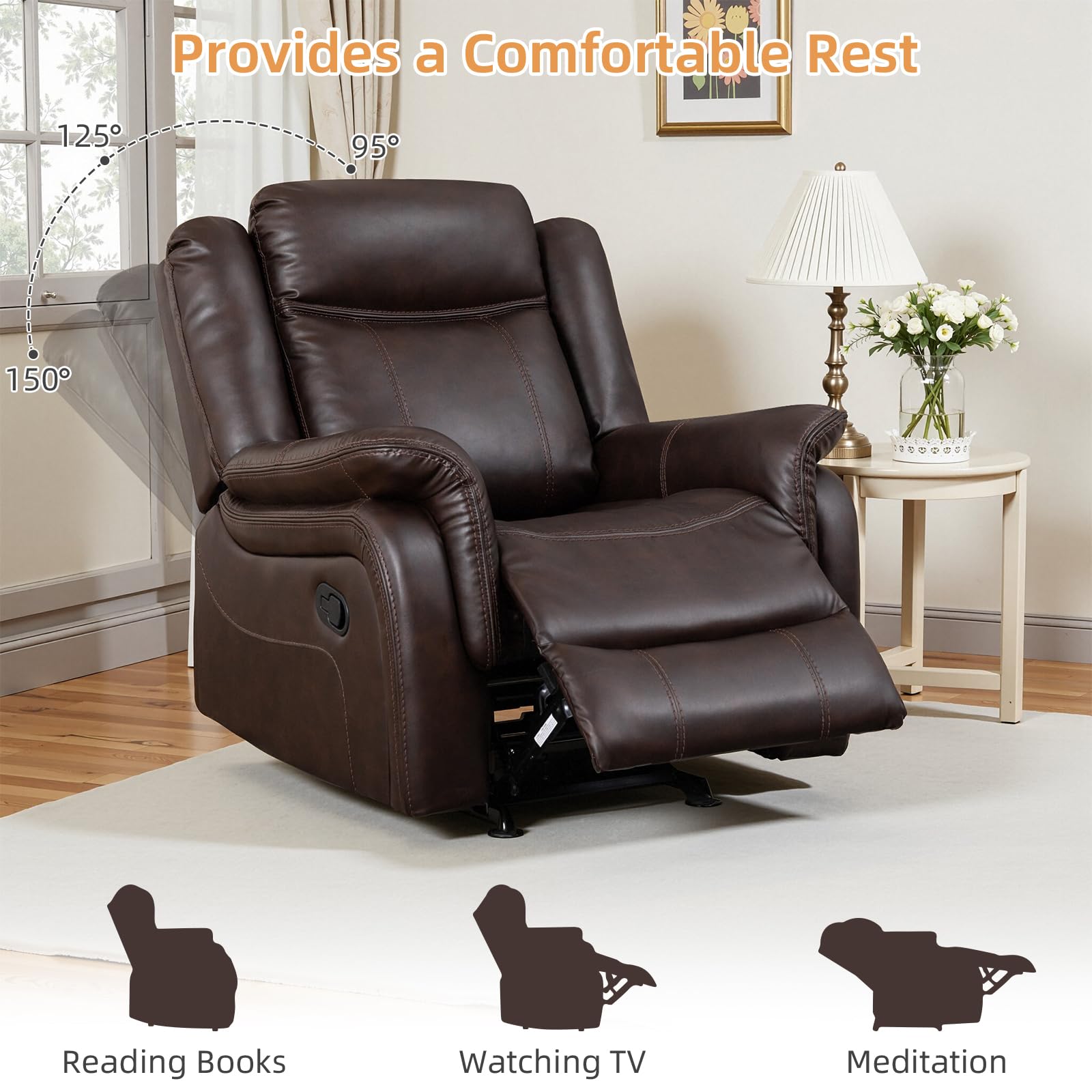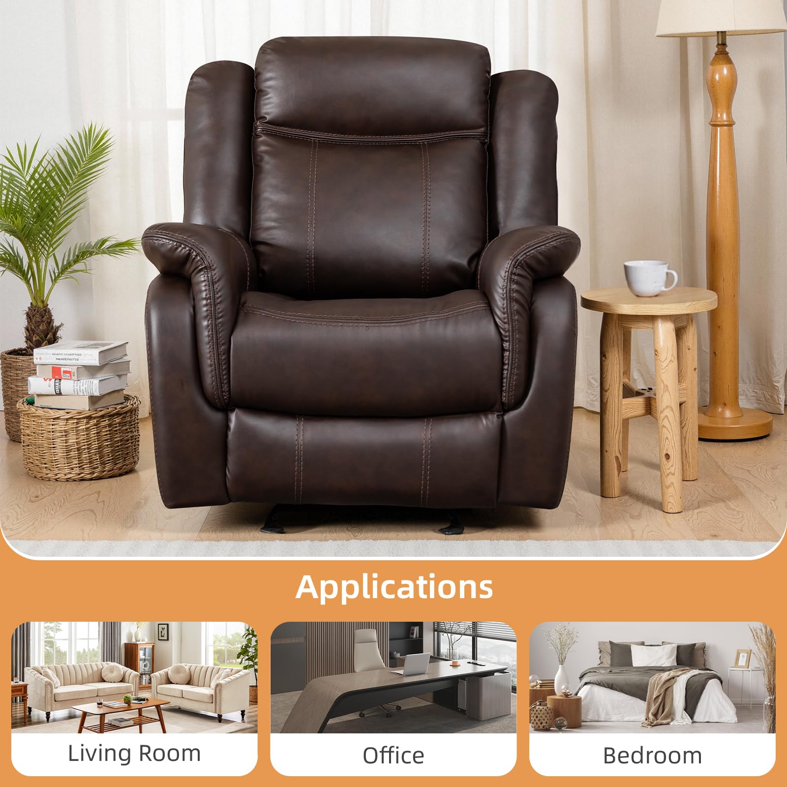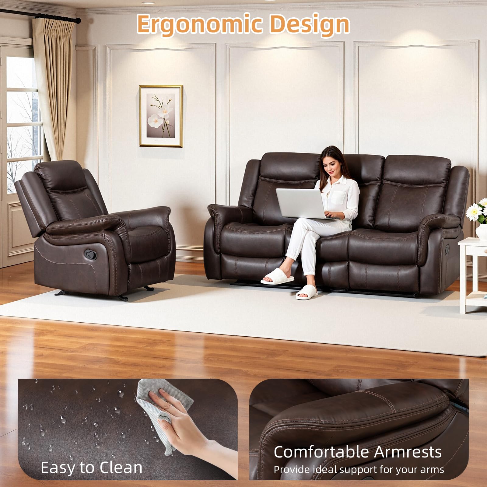 Adjustable Recliner Sofa Set, 2-Piece Reclining Couch (1+3, 2+3), Single Seat Recliner & Sofa Set with PU Leather, Cup Holders, Ergonomic Backrest & Angle Adjustment for Living Room & Office, Brown Seat