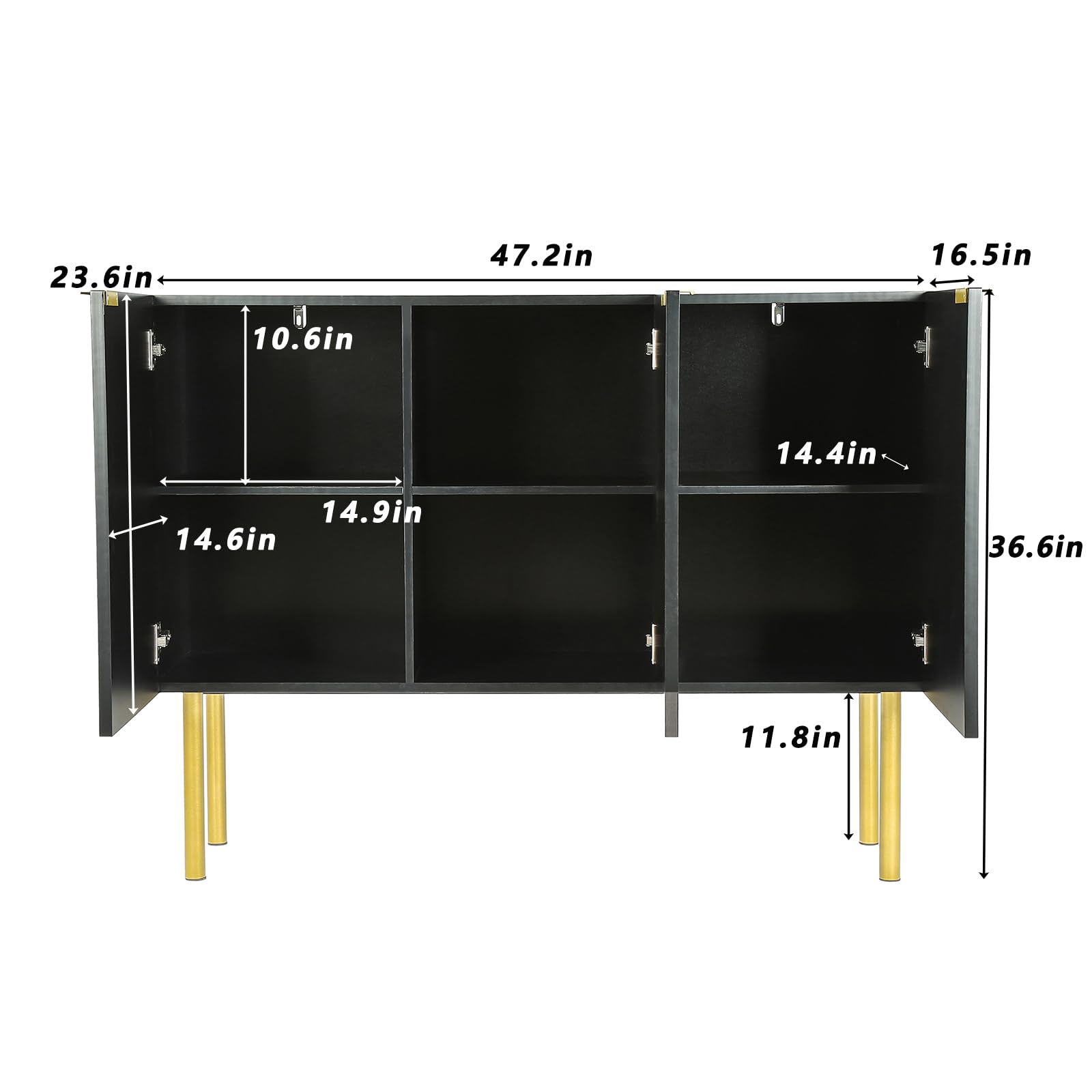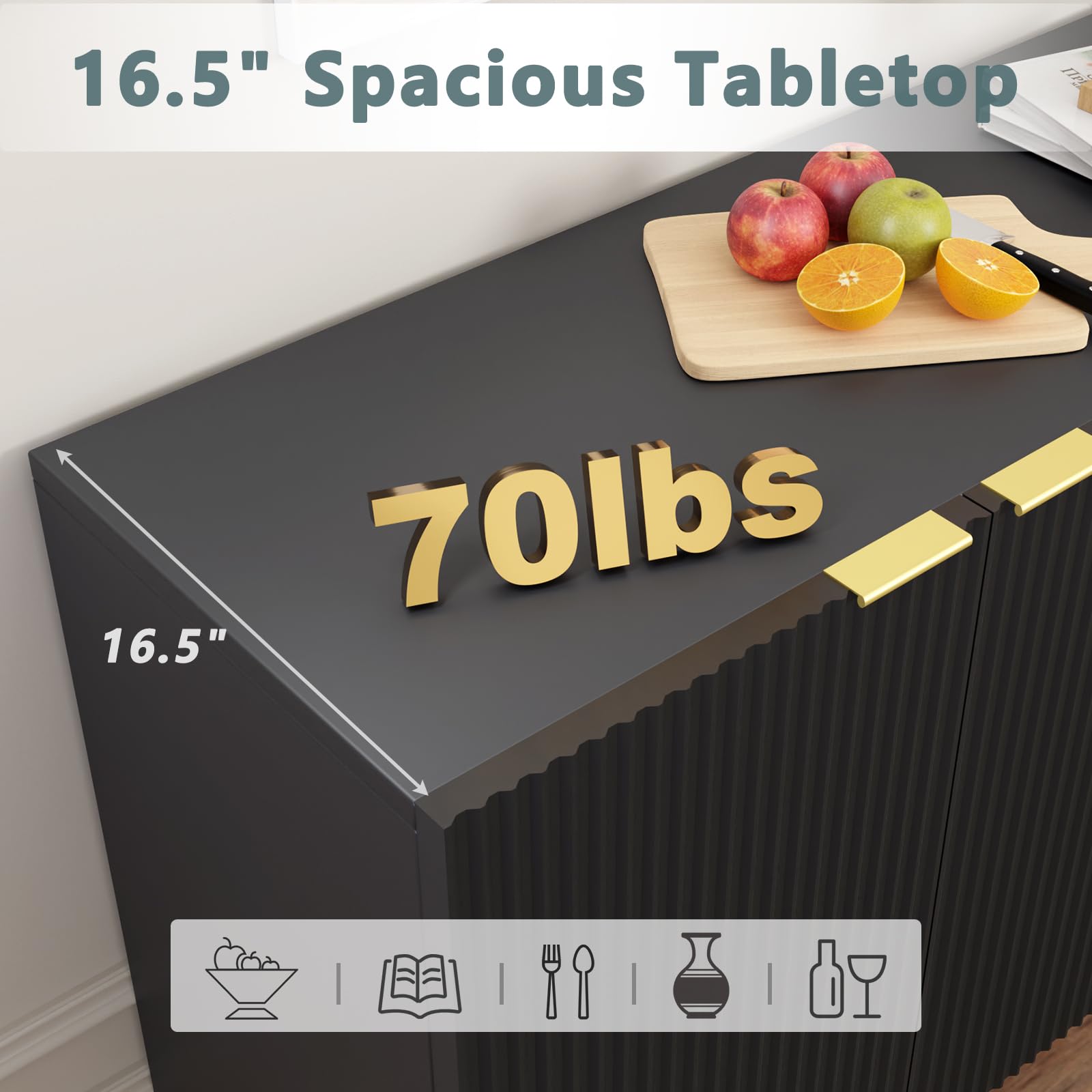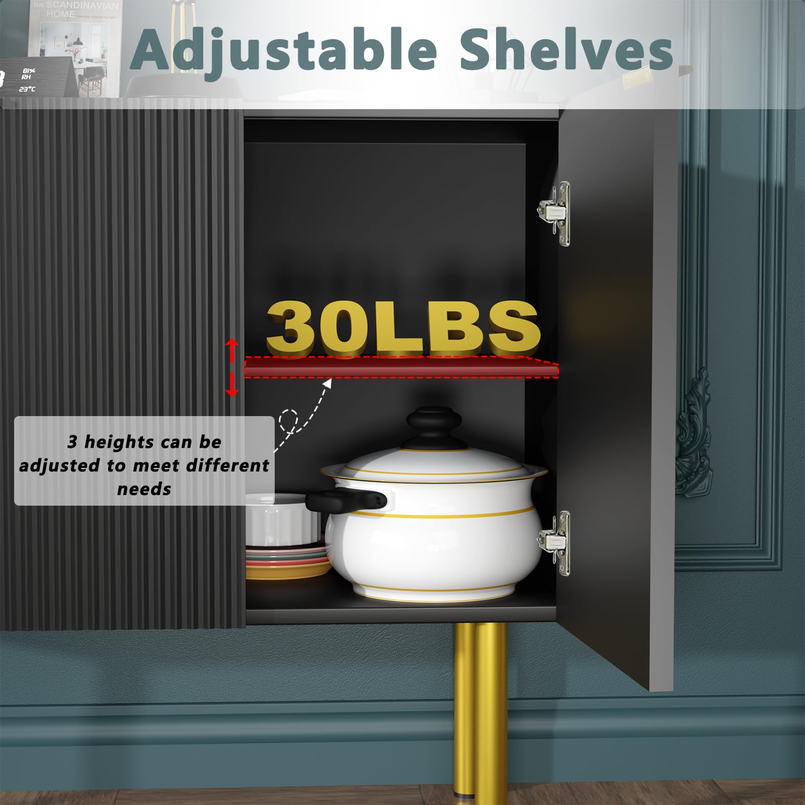 Buffet Sideboard Storage Cabinet Coffee Bar Console Table with Adjustable Shelf, 3 Doors, Black