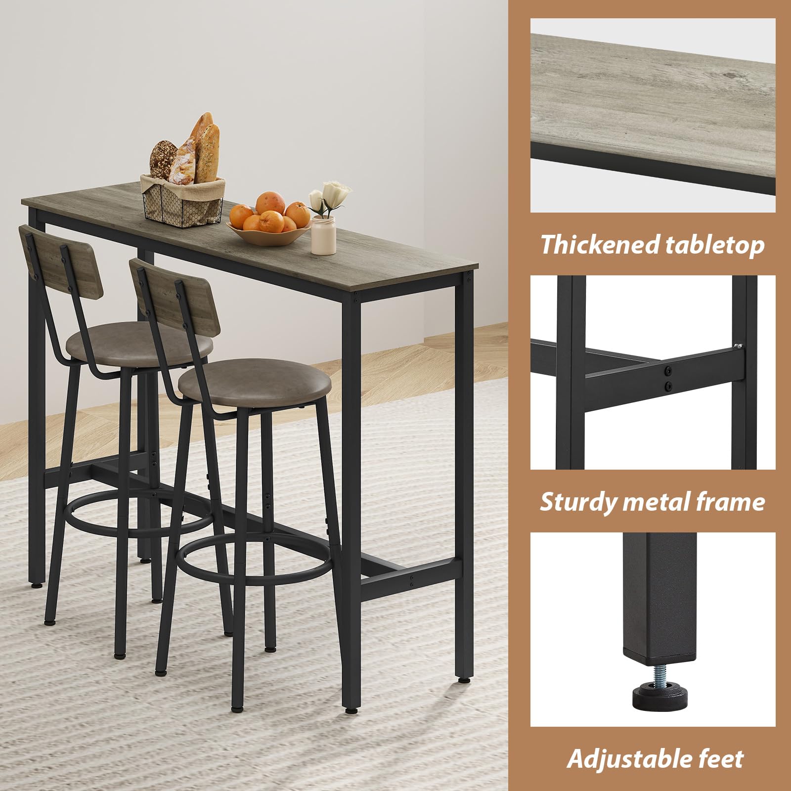 Dining Table Set for 2, 3-Piece Bar Table and Chairs Set, Kitchen Table and Chairs, High Top Table with 2 PU Upholstered Stools, Space-Saving Pub Table Sets for Small Space, Gray