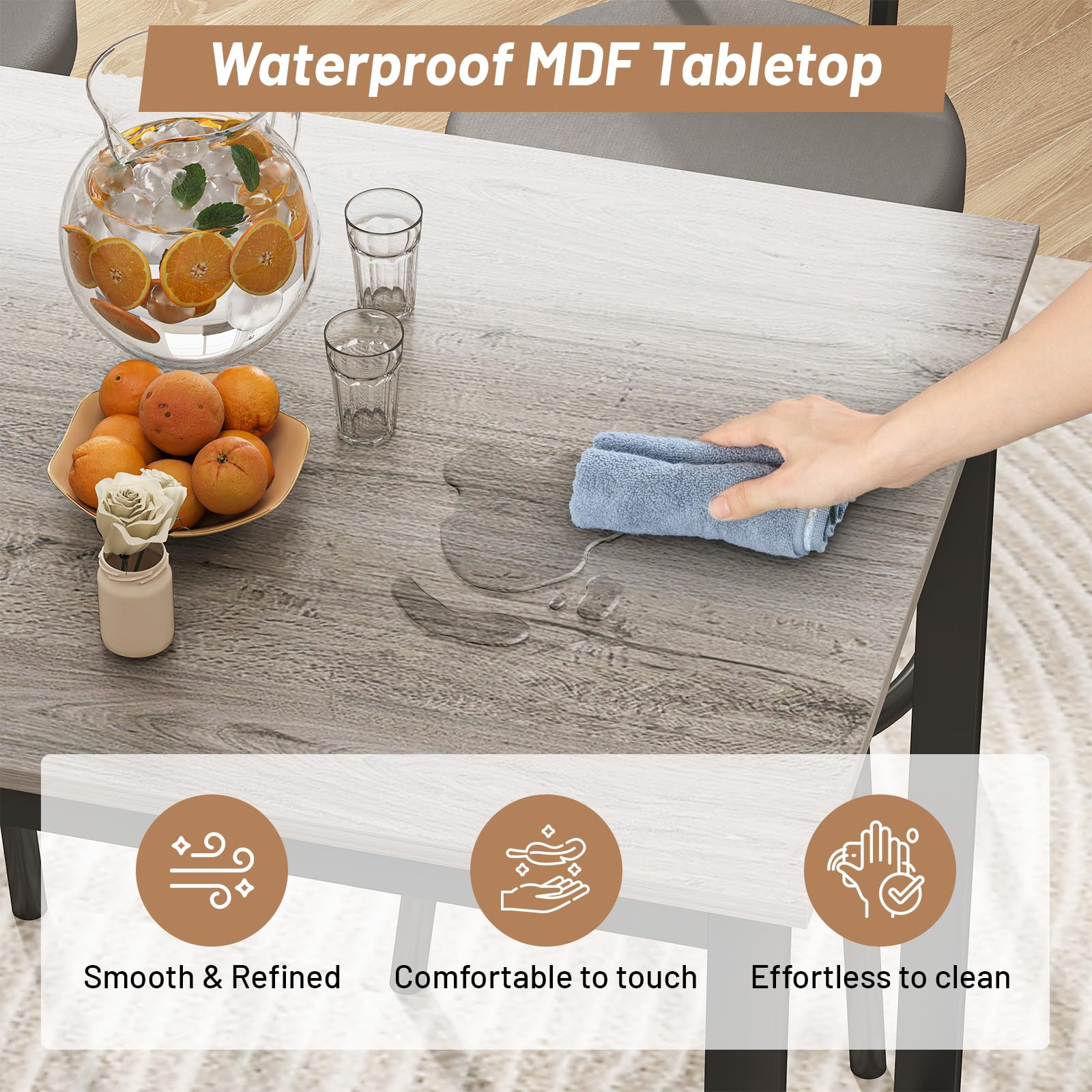 Dining Table Set for 4, 5-Piece Bar Table Set, Kitchen Table and Chairs, Counter Height High Top Table with 4 PU Upholstered Stools, Space-Saving Pub Table Sets for Small Space, Gray