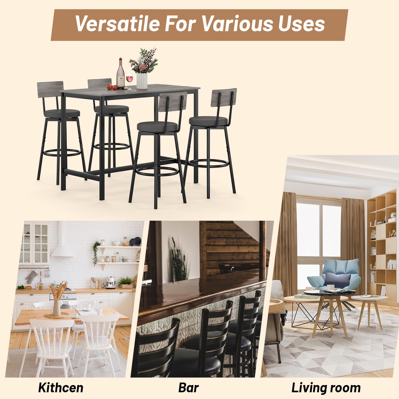 Versatile for Any Space: This kitchen table set for 4 features a pub table and 4 black metal bar stools, featuring a minimalist industrial style that complements various home decors. Ideal for dining areas, kitchens, breakfast nooks, and home bars.