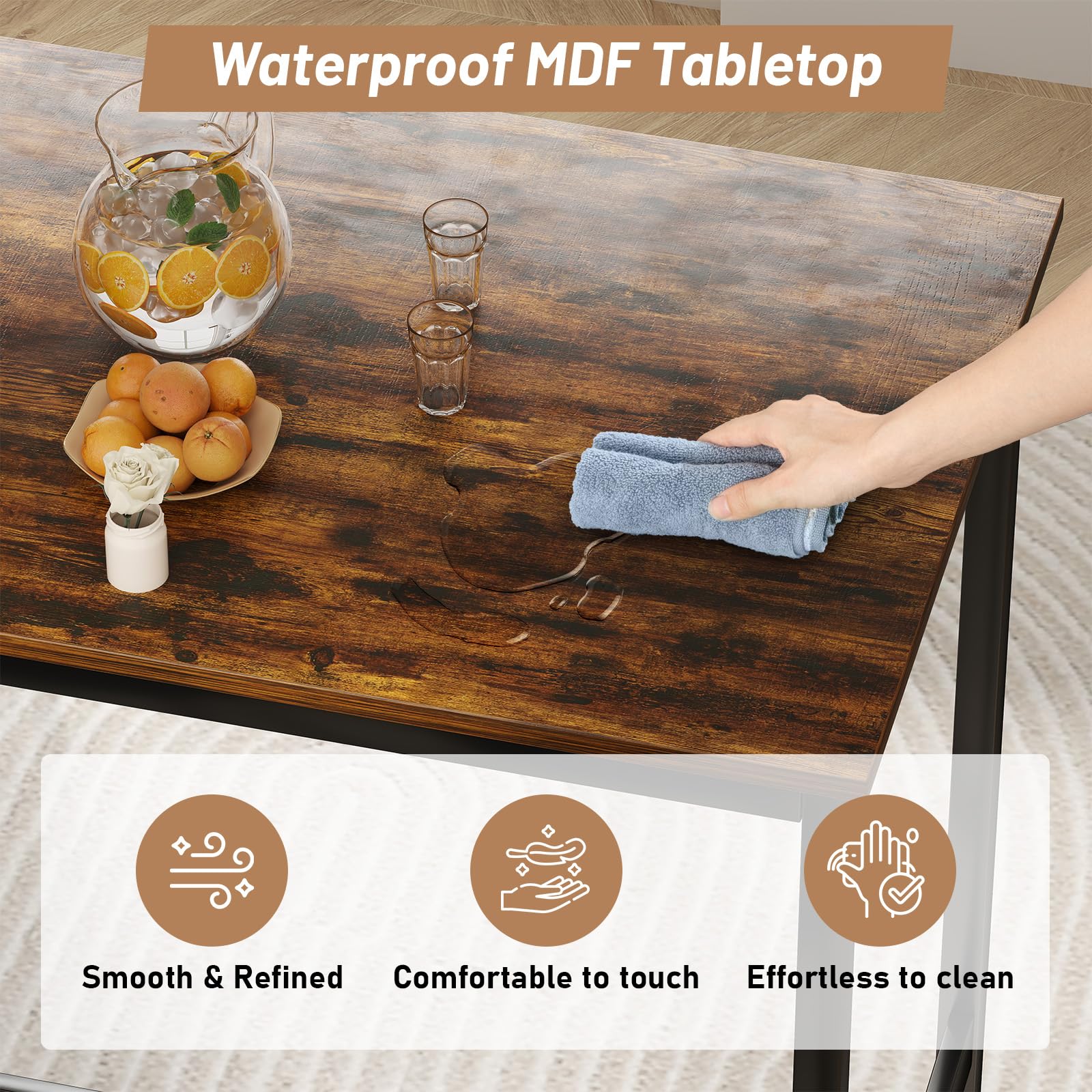 Stable and Durable Construction: The high top table and chairs set for 6 are made of thick wood and sturdy black metal frames, designed to enhance durability. The table top has a maximum weight capacity of 250 lbs, and each stool can support up to 350 lbs, maintaining safety during long-term use.