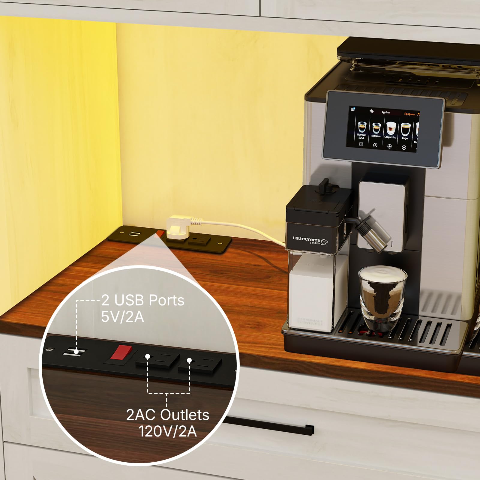 Kitchen Pantry Storage Cabinet with LED Lights and Charging Station, 71" Tall Kitchen Hutch Buffet Cabinet with Door Glass Holder and Drawers, Freestanding Wood Cupboard (Antique White)