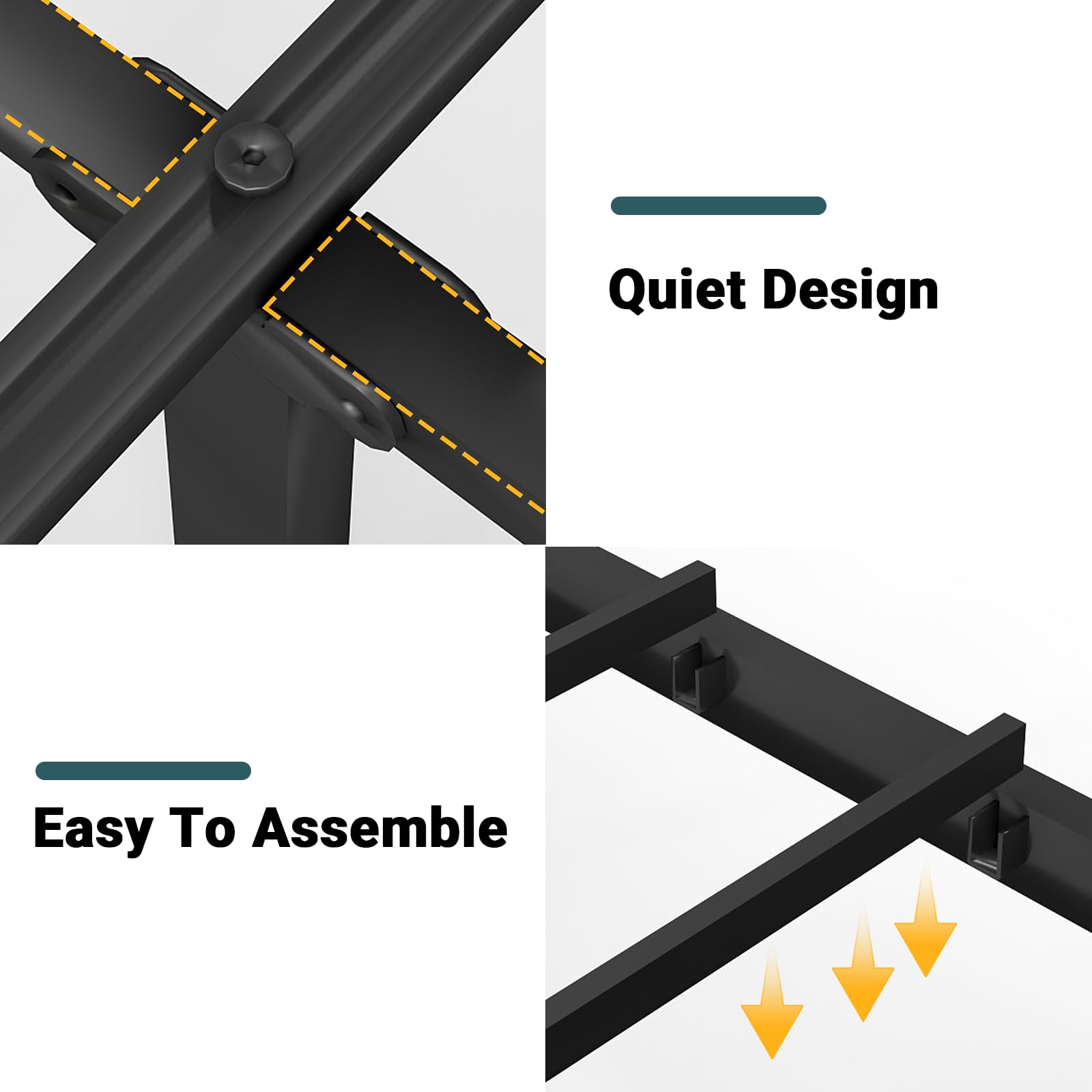 【Durable & Sturdy Frame】Made with a strong metal construction and heavy-duty steel slats, this bed frame queen offers reliable support without requiring an extra box spring. Its stable design ensures long-lasting durability and comfort