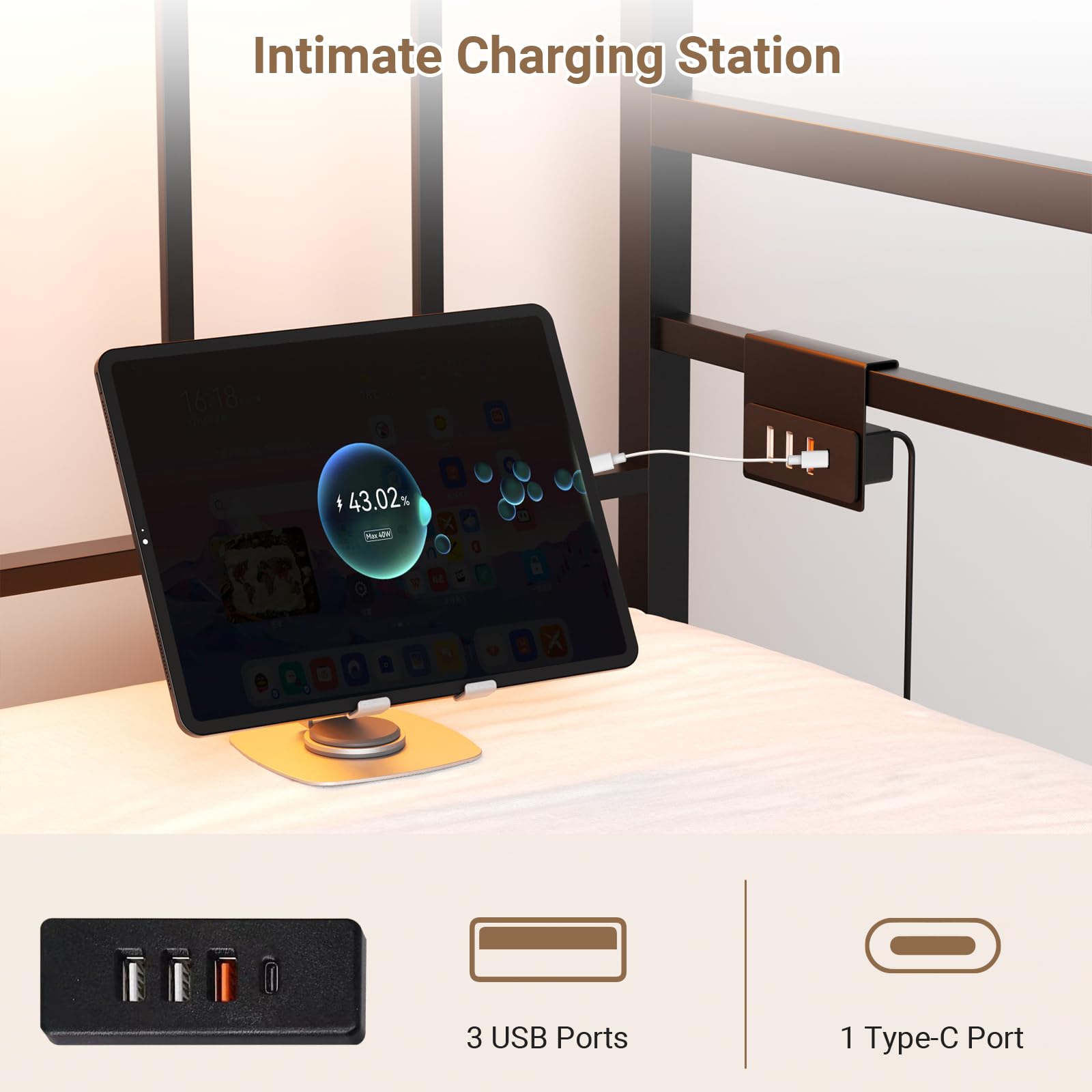 Charging Station, LED Lighting, No Box Spring Needed, Space Saving