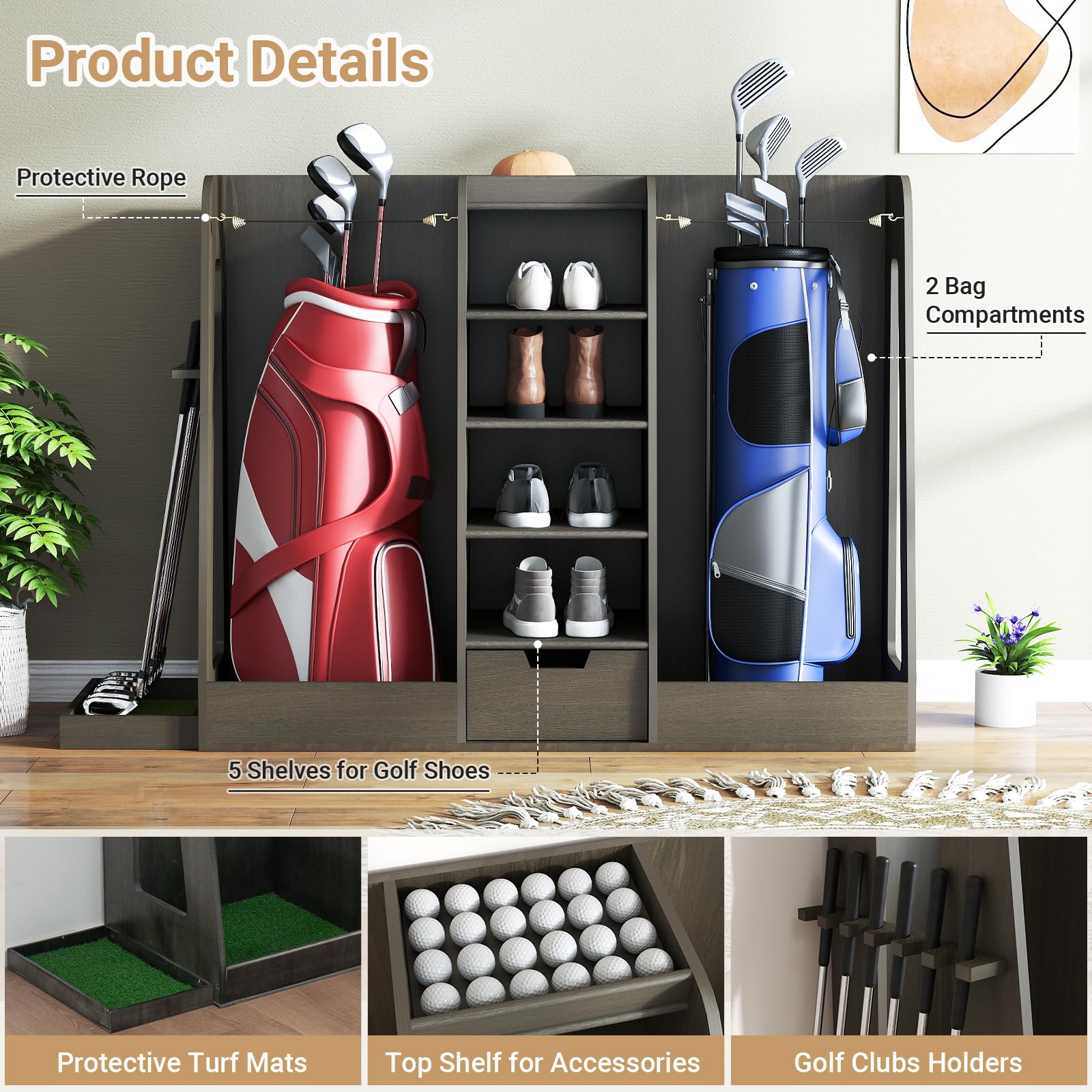 Wooden Golf Bag Organizer and Storage Rack, Golf Storage Organizer for Garage, Golf Bag storage Rack, Holds 2 Golf Bags and Other Golfing Equipment, Suitable for Garage Home Golf Club